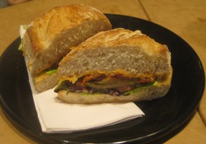 Dr HH loved his antipasti sandwich too, with its roasted courgette, sundried tomatoes, hummus and nicely toasted bread.  A great start to the day!