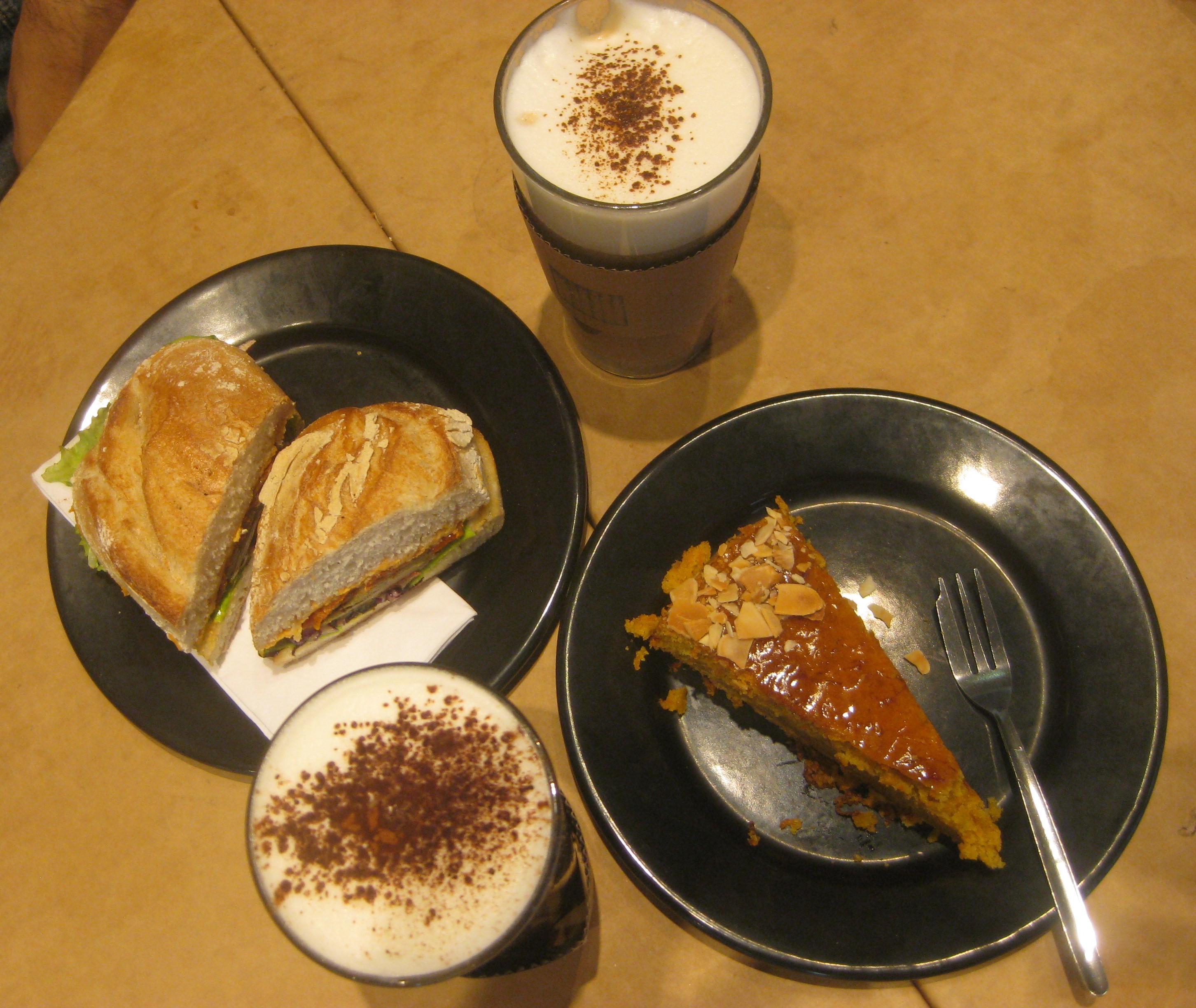 I had some breakfast cake, of course:  the carrot cake was really good, and so sticky on top.