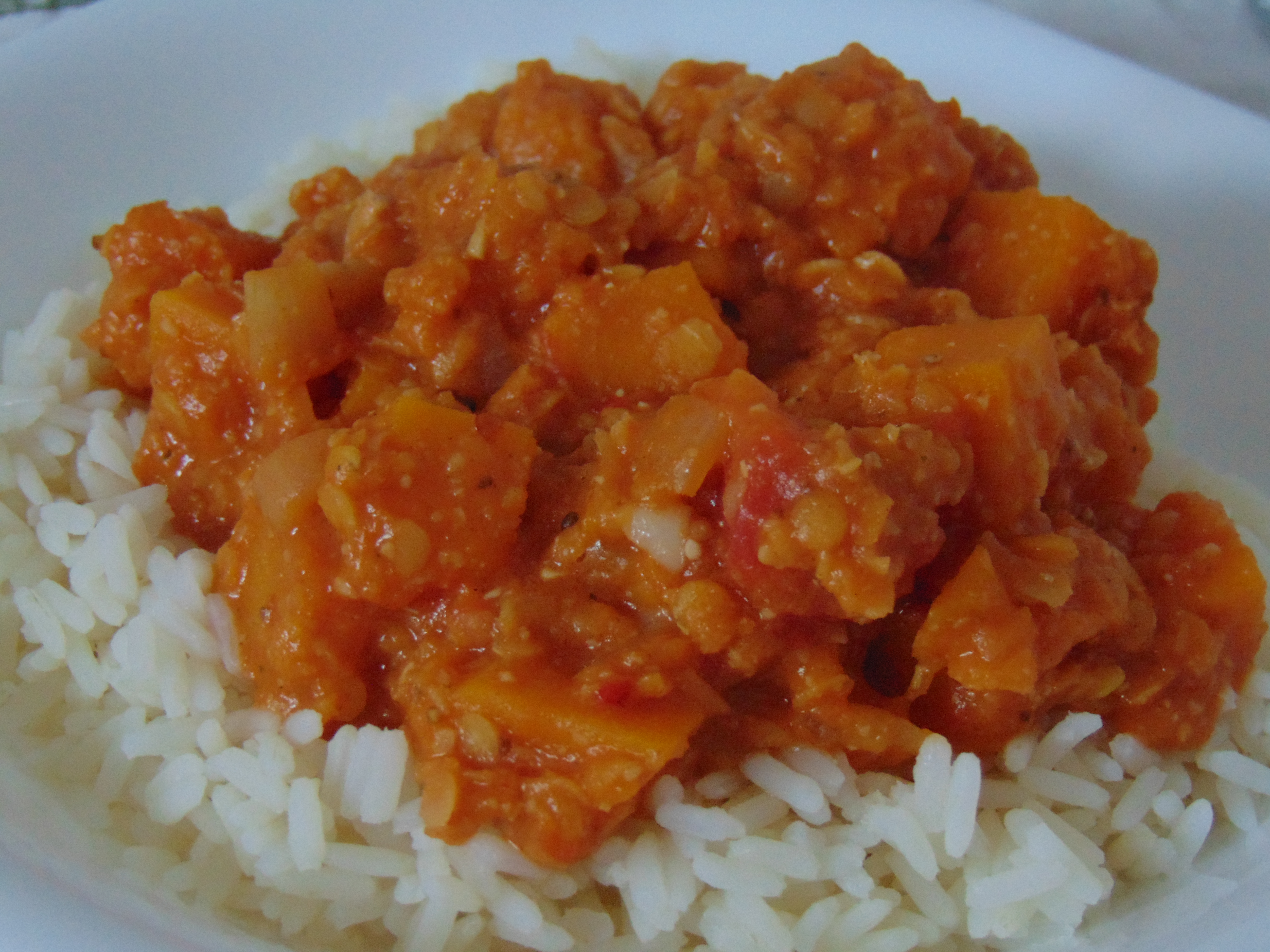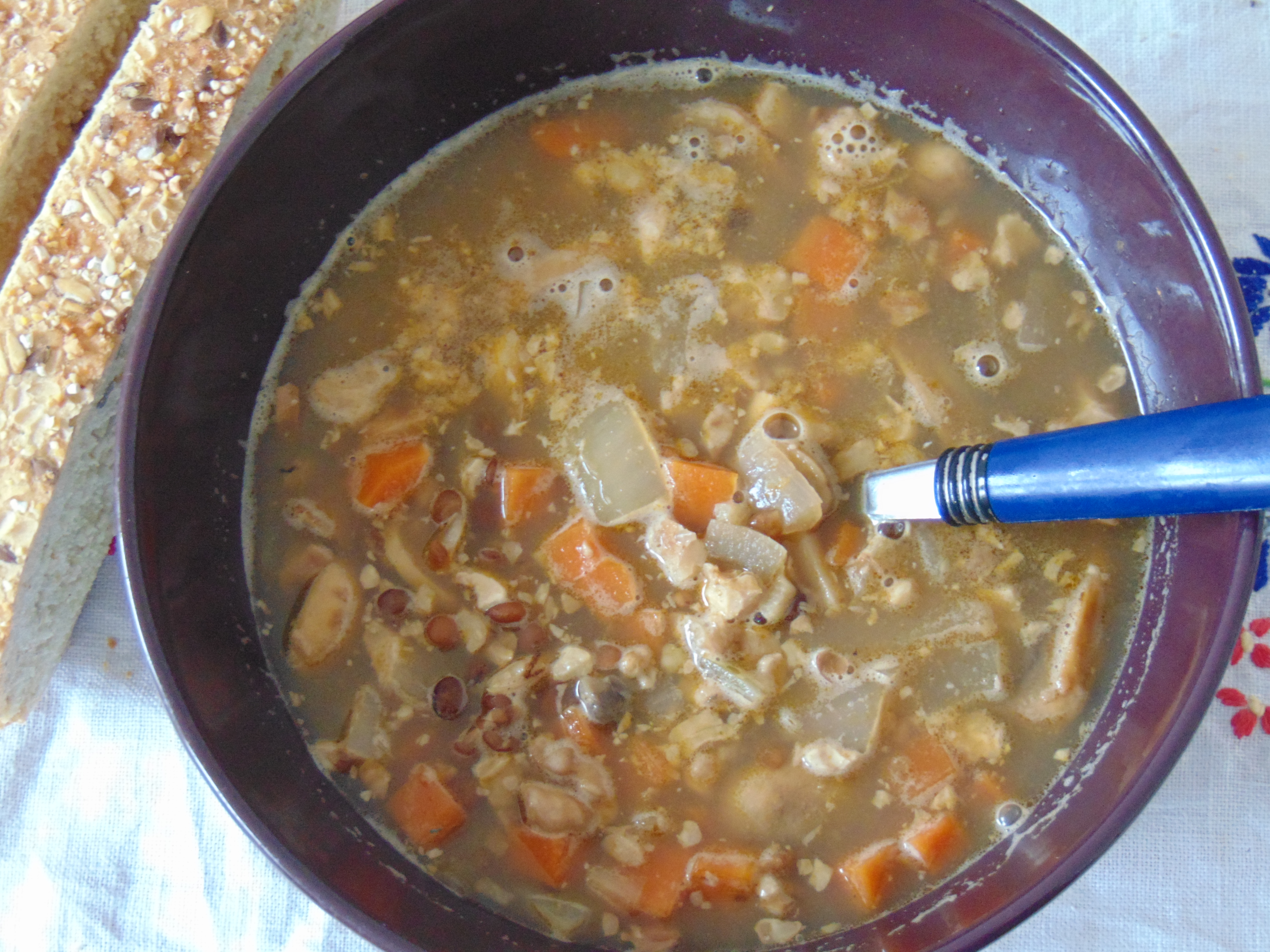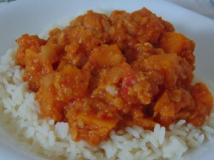This is just the kind of soup I like! It’s a sweet potato and lentil soup, and it was wonderfully thick and spicy, and extremely filling – the ideal lunch!