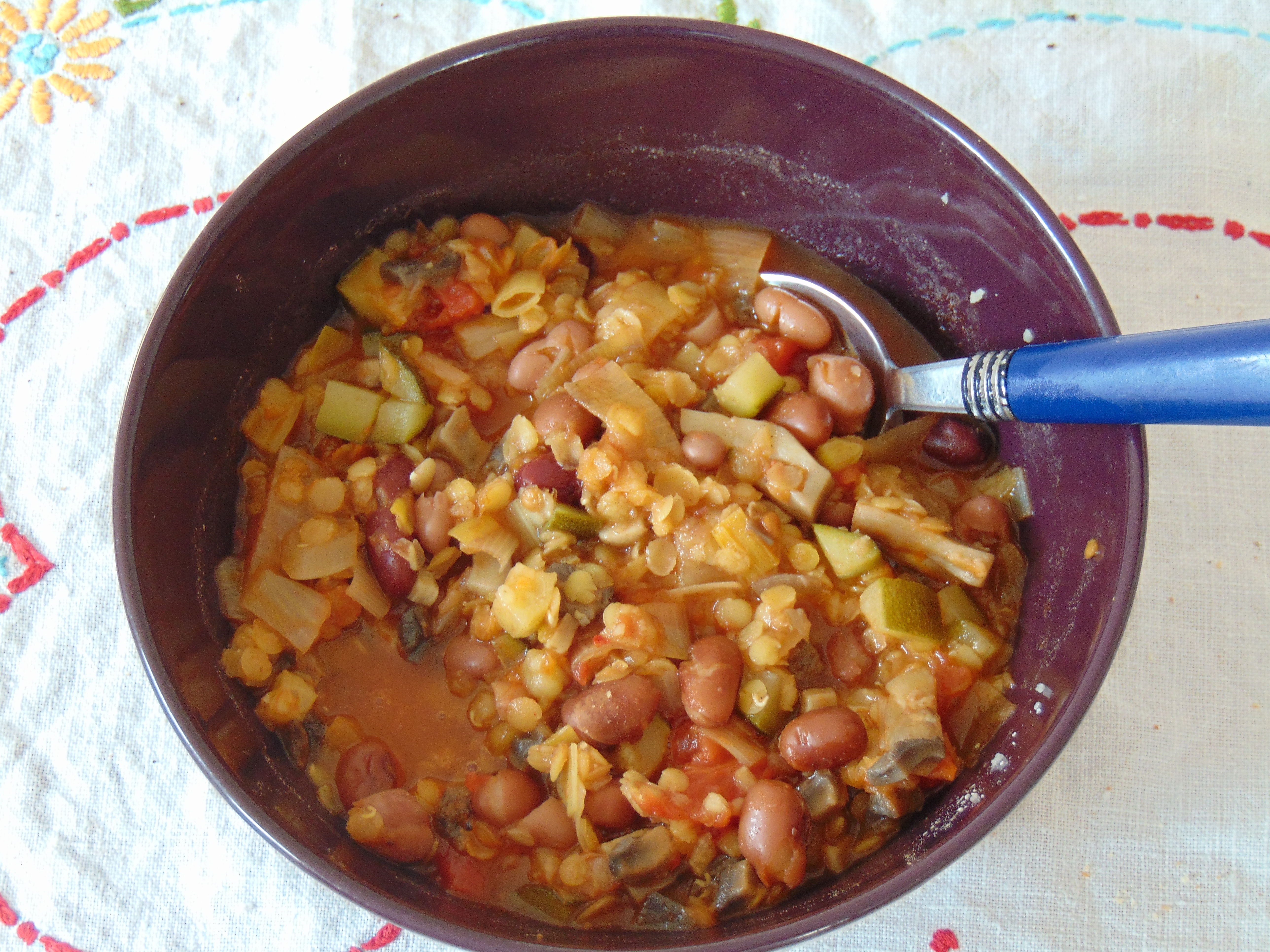 The lentil and bean soup was more of the same – practically a stew! I used a tin of chopped tomatoes rather than the tomato sauce in the recipe, which may explain why mine was so hearty.