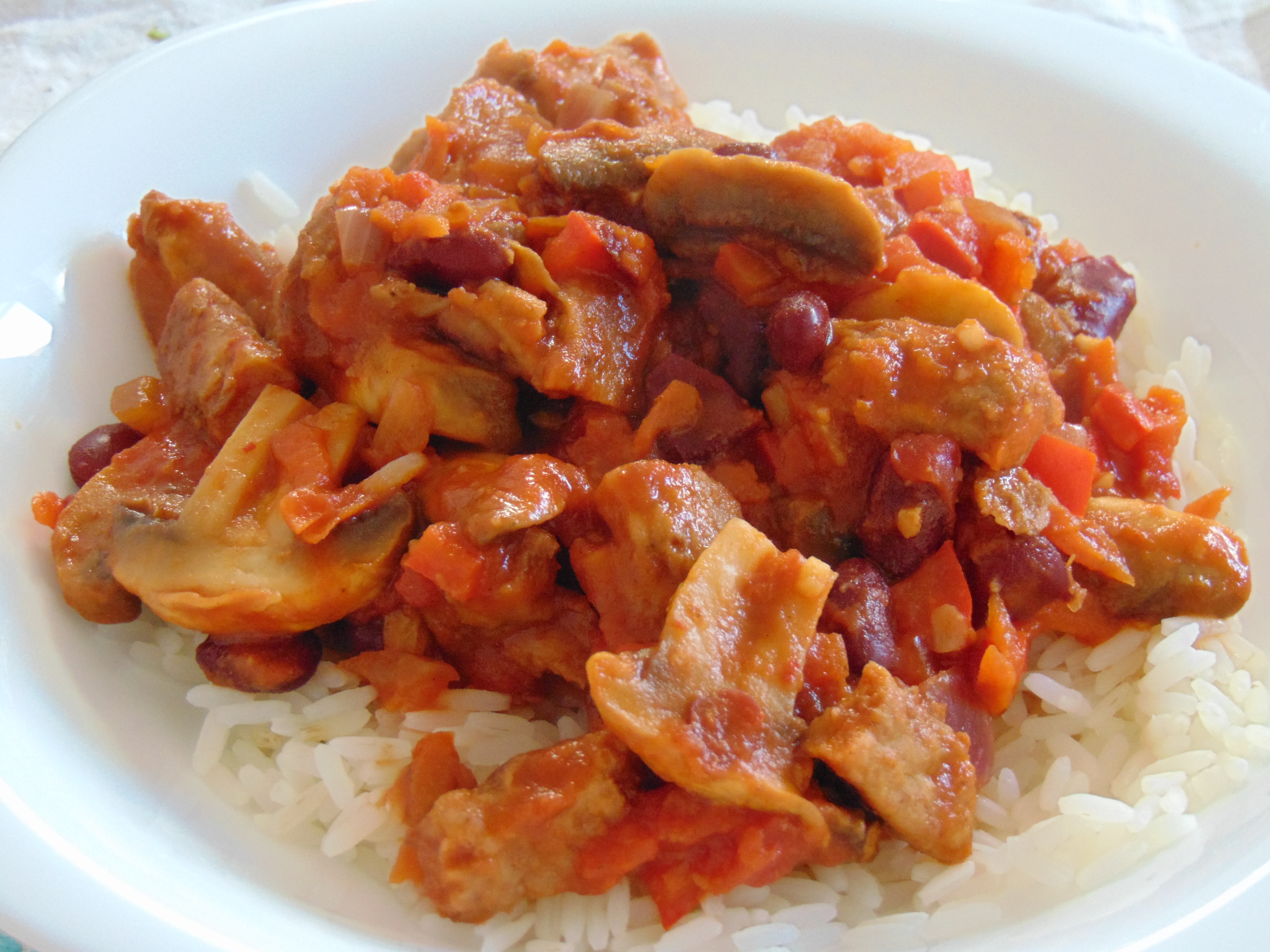 As this is a Mexican book, of course I had to try the vegetable chilli recipe. I was looking for some mock mince to use in it, but had to settle for meaty strips instead, which turned out really nicely. It was a really flavoursome chilli, definitely recommended.
