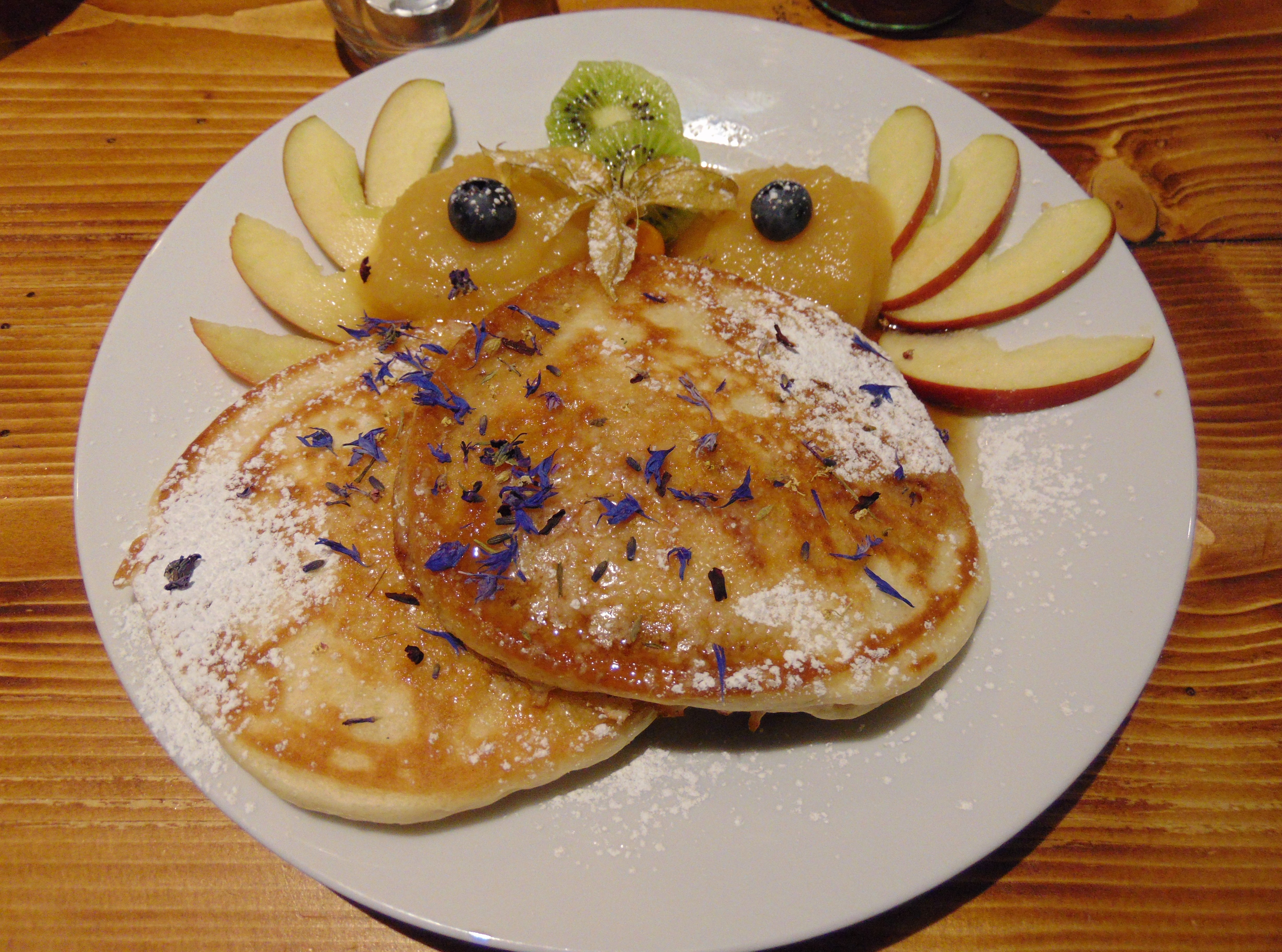 And of course, we got the pancakes for breakfast. For €5.90, they were much bigger than we were expecting (in general it was a cruel blow going back to western European prices after spending so long in the dirt-cheap Czech Republic). And they were delicious to boot! The pancakes were fluffy and pillowy, and were served with artfully arranged fresh fruit, apple sauce and maple syrup. I’d devour this plate again right now if I could!