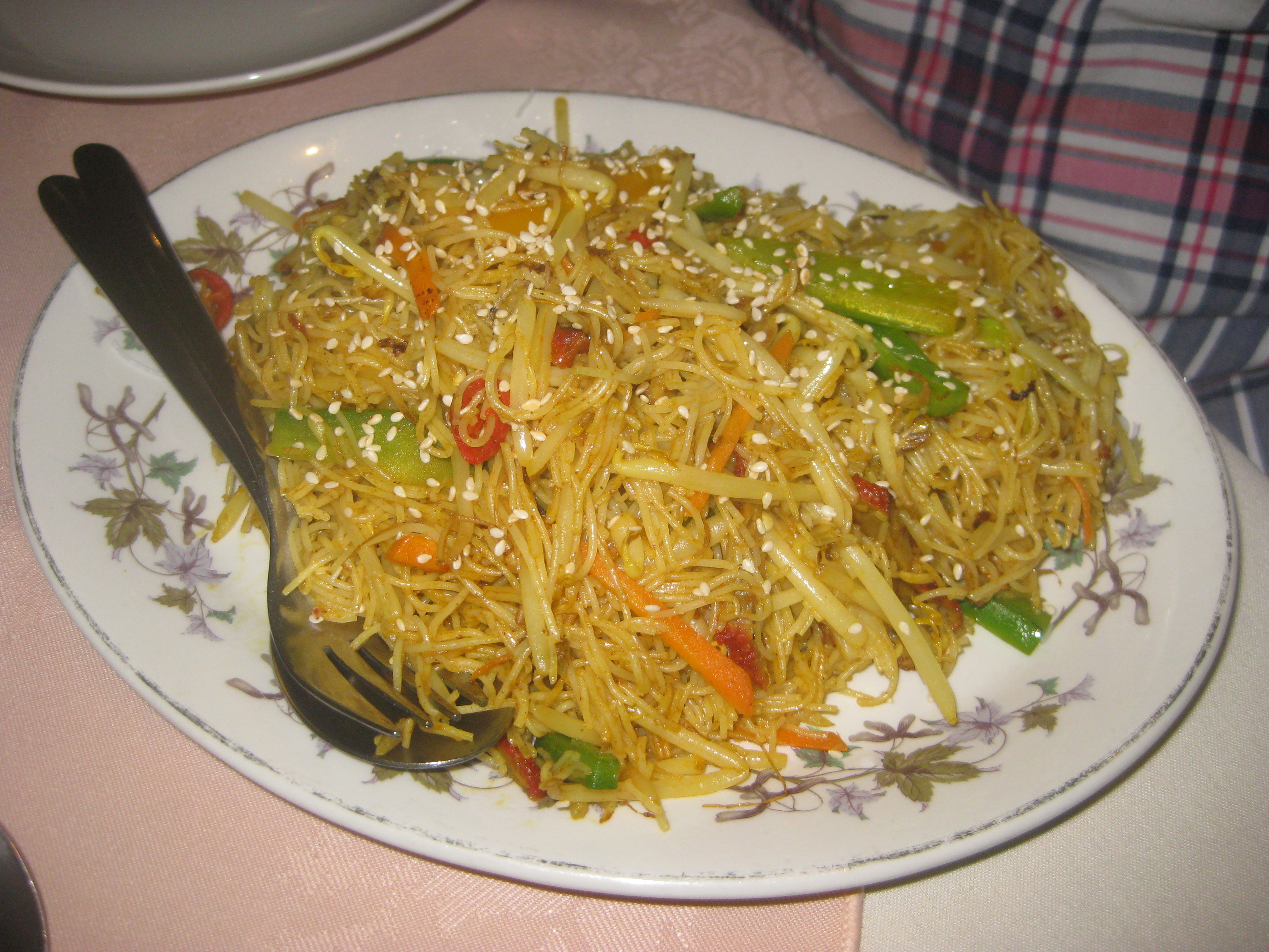 My mum is perhaps even less adventurous than I am when it comes to ordering:  she loves Singapore noodles so much that she can’t order anything else!  She is very pleased with this dish, even though she usually isn’t keen on mock meats.
