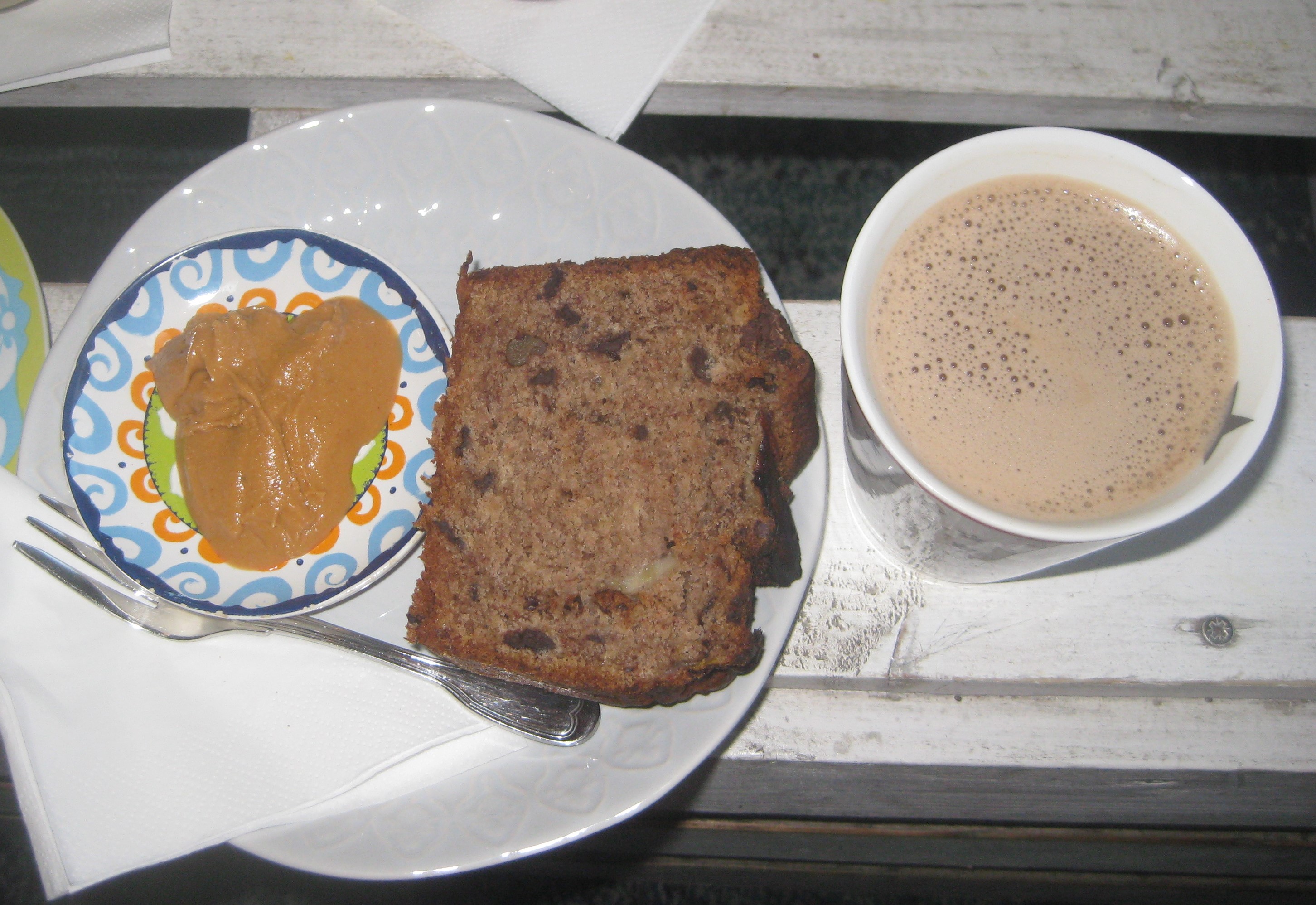 I love banana bread that has chocolate chip chunks in it. I don’t know why I’ve never thought to put peanut butter on it though. Where have I been?!