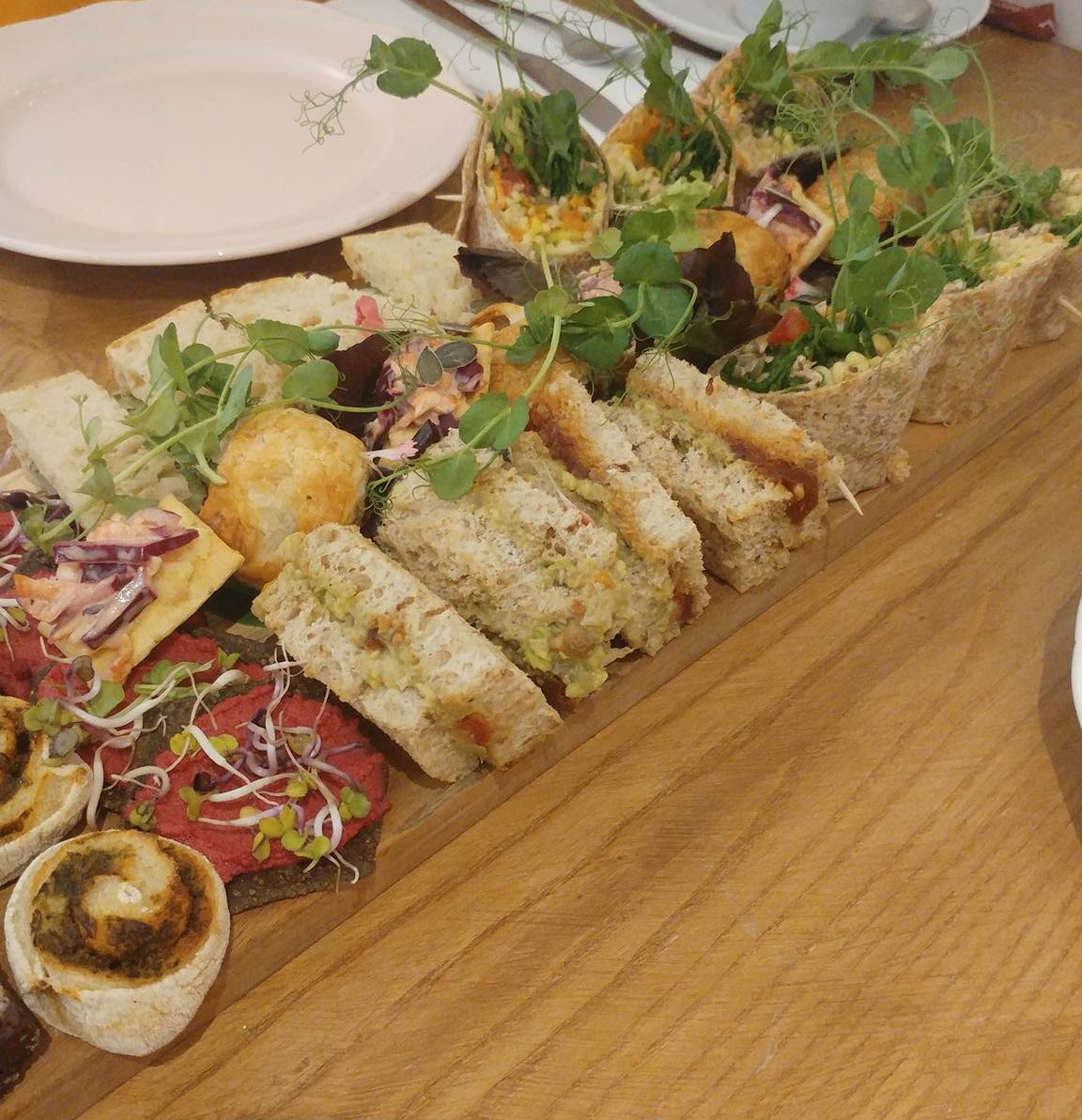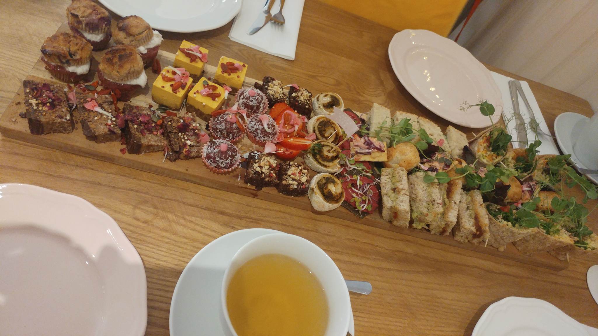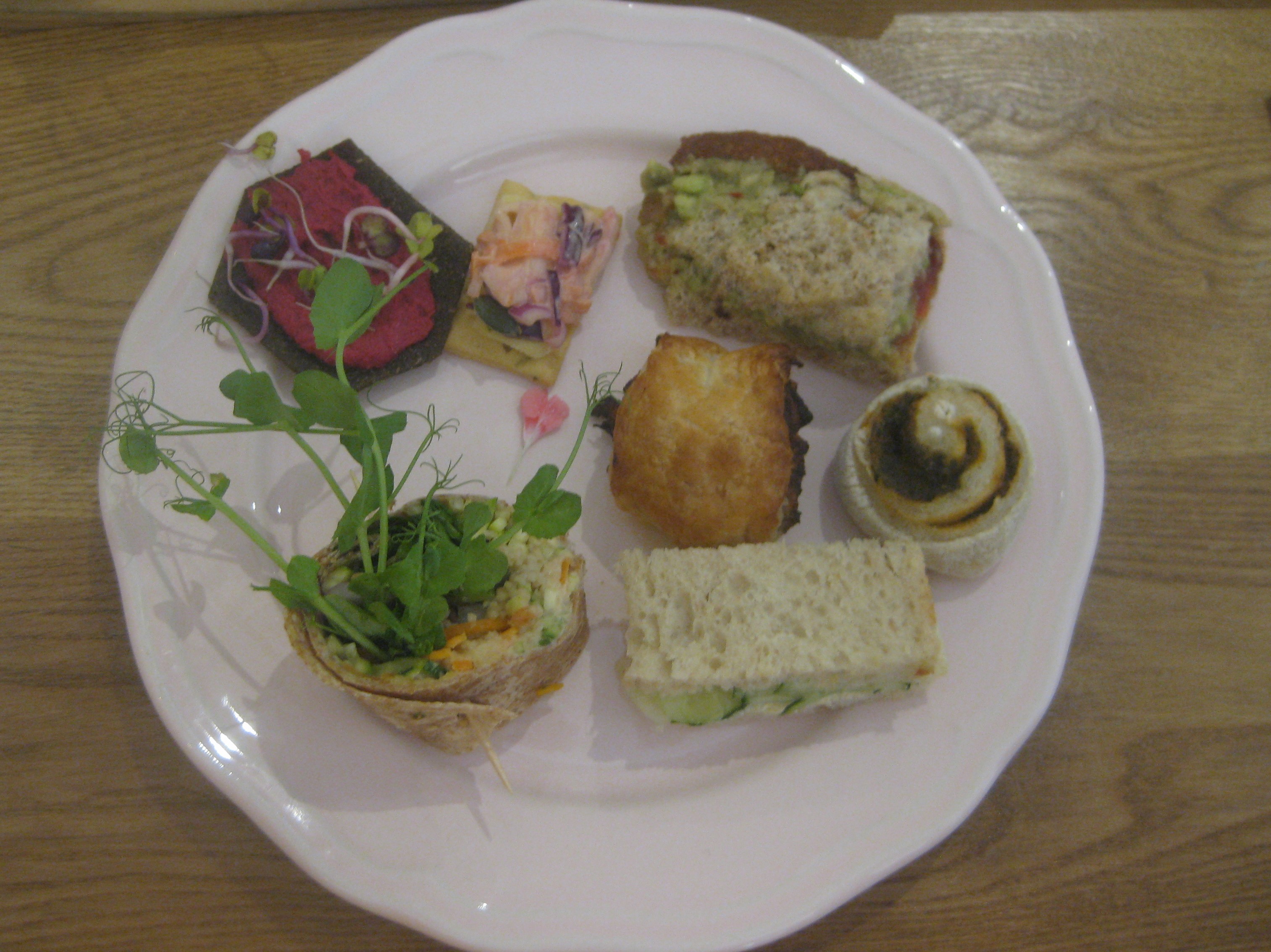I love the idea of presenting it all on a wooden board – everything’s so appealing when you can see it laid out like that. I’d be very happy to eat all of that for £20. The pastries definitely sound a cut above what you’d get for most vegan afternoon teas.
