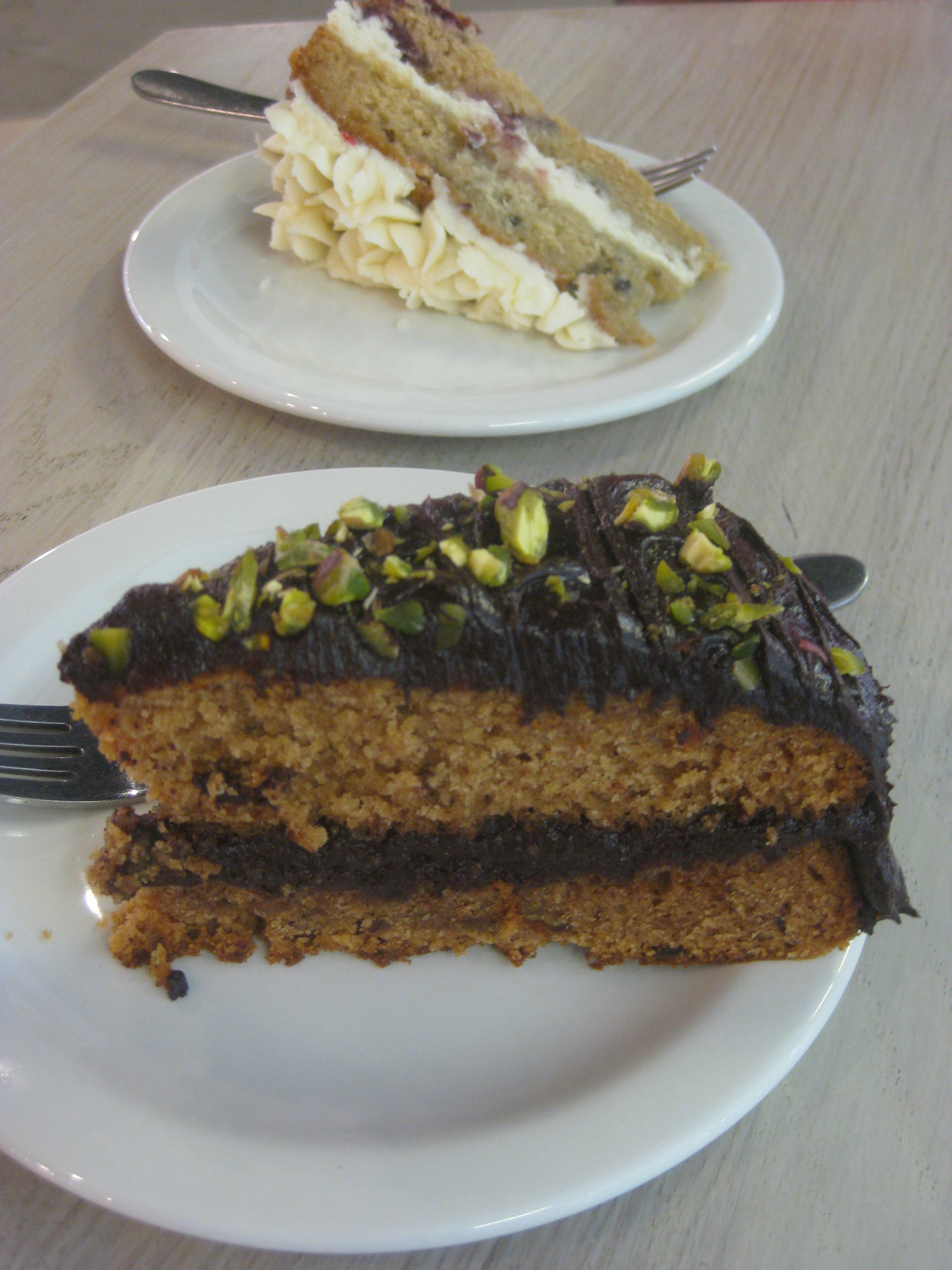 The first time I went to Foundation they had three different vegan cakes in, much to my delight.  (The second time it was their first day opening after Christmas and they only had one cake in the whole place and seemed confused as to whether it was vegan or gluten-free, but I understand that in normal circumstances they are well-stocked and well-labelled.)  This chocolate almond cake in particular is definitely a winner.  The cafe is really huge and light, but the acoustics can be a bit of a nightmare.