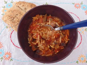 The aubergine and orzo soup was really simple and tasty. I used a tin of tomatoes and cut down on the stock a little, making it a bit thicker and stew-like, which is always a good thing in my opinion! It was a nice, but unremarkably-flavoured soup.