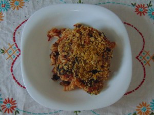 The aubergine baked pasta was lovely. It had a good hit of fennel seeds,which made it quite different from the other dishes we’d been eating. I added more pasta to fill us up, and I blitzed nooch and pecans to make a parmesan crumb to throw on top, which I’d highly recommend!