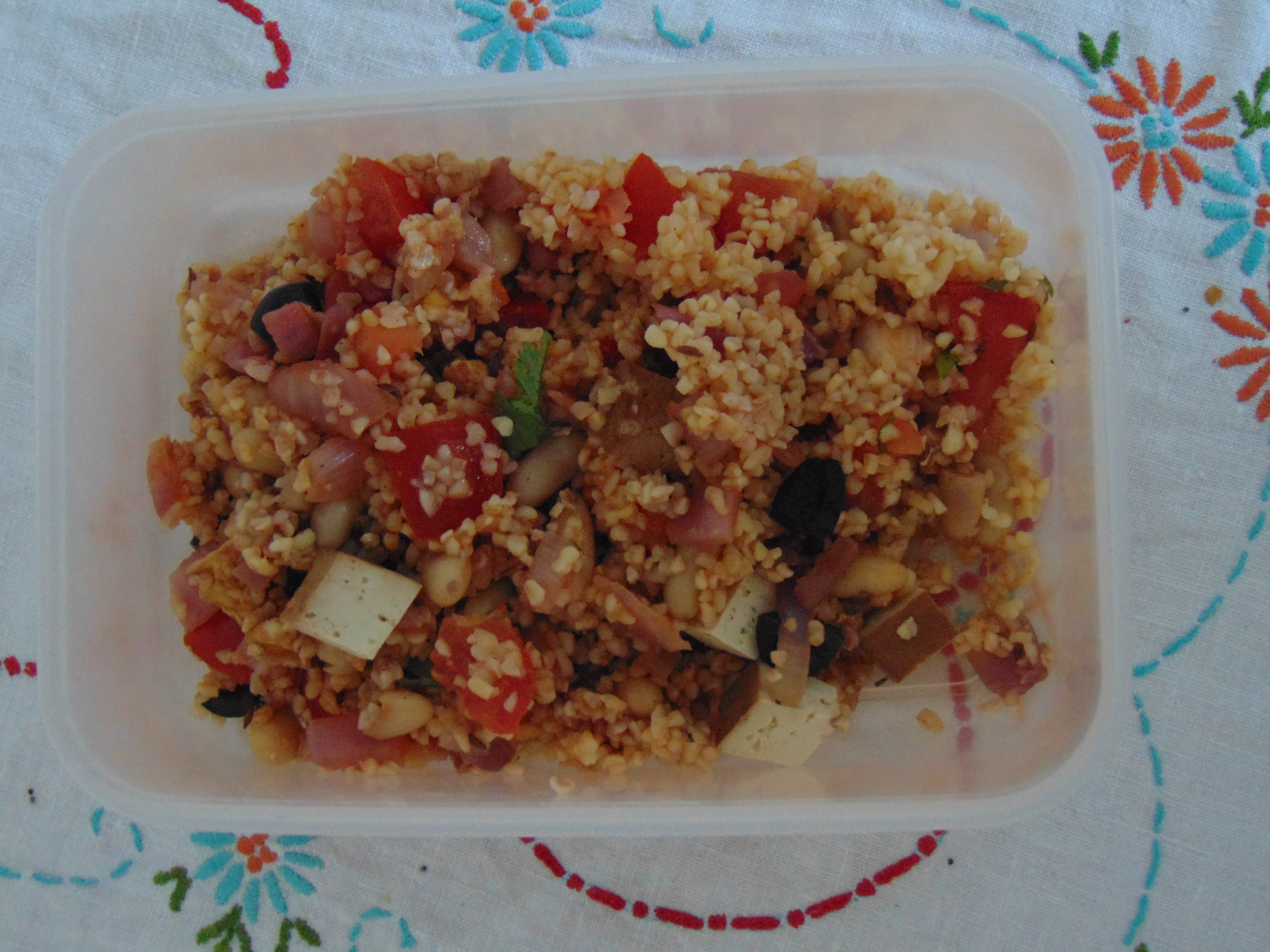 The bulgar, bean and walnut salad looked a little light, so I added some smoked tofu and olives to give it some more flavour. Even without the additional treats, it was really delicious and had much more taste than the other salad. A very good choice!