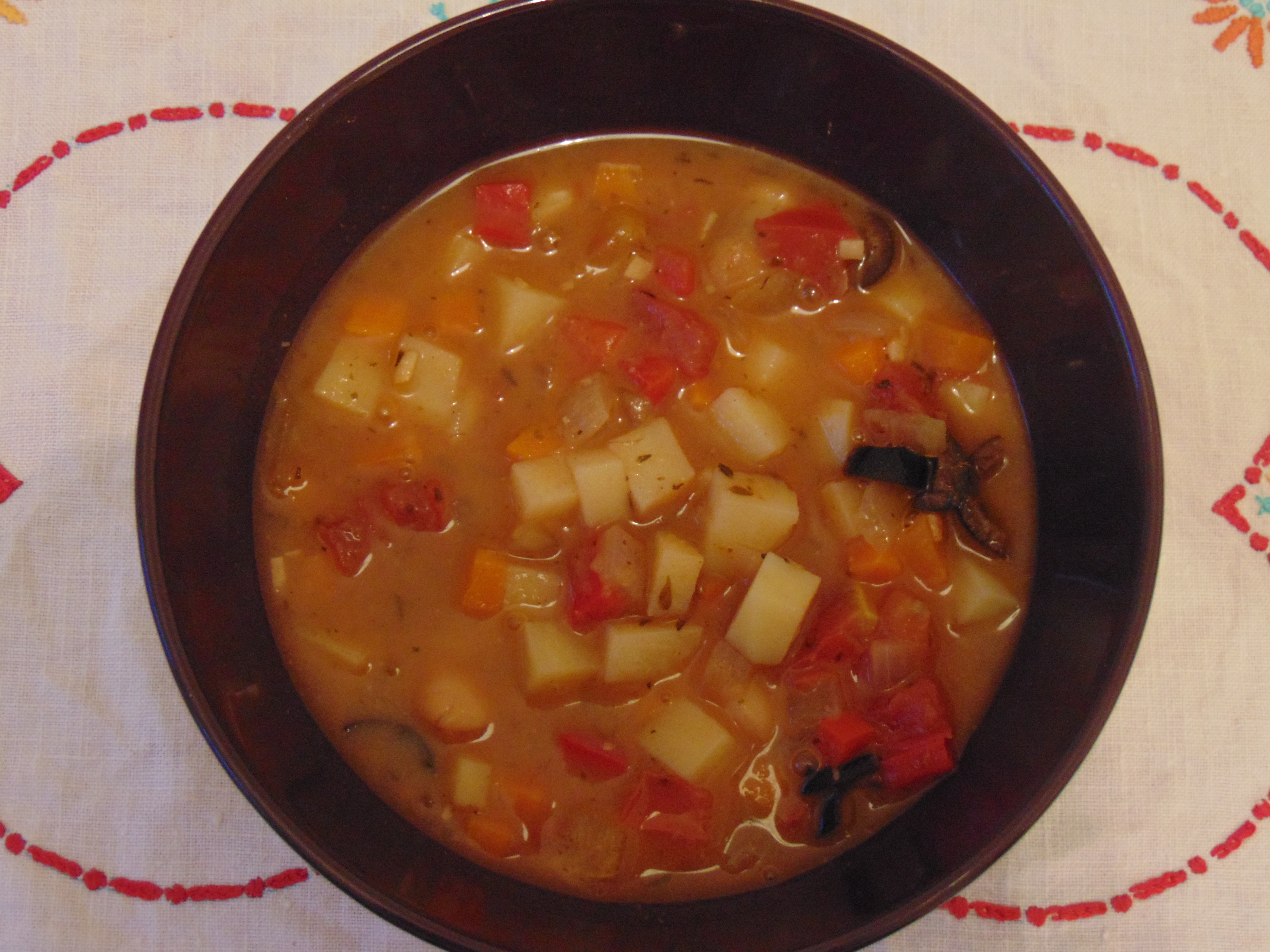 The fassolada had a lot more going on! Butter beans, potatoes, vegetables, olives: quite the party. I made this just as the weather was turning autumnal, and it really hit the spot.