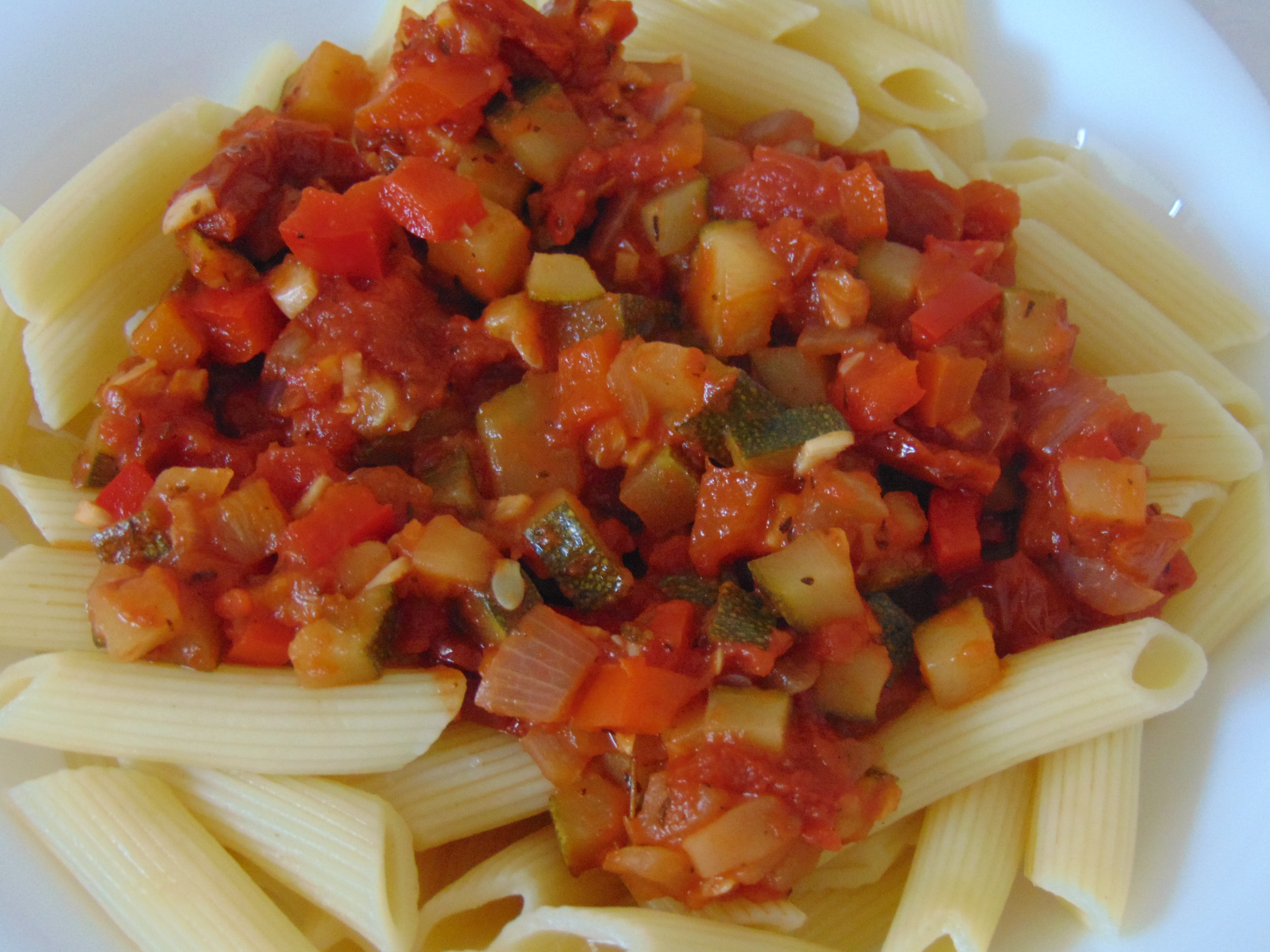 I made an obvious change to the spaghetti with sun-dried tomato and vegetable sauce: no spaghetti! You can’t go wrong with sun-dried tomatoes, they really brought the flavour to this dish.