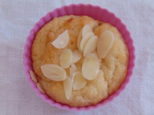 I made the yoghurt and almond cake in cupcake form, for ease of popping them in lunch boxes. This recipe was a big hit! The sponge was light and nutty, and I liked the sweet syrup gluing the almonds on top.
