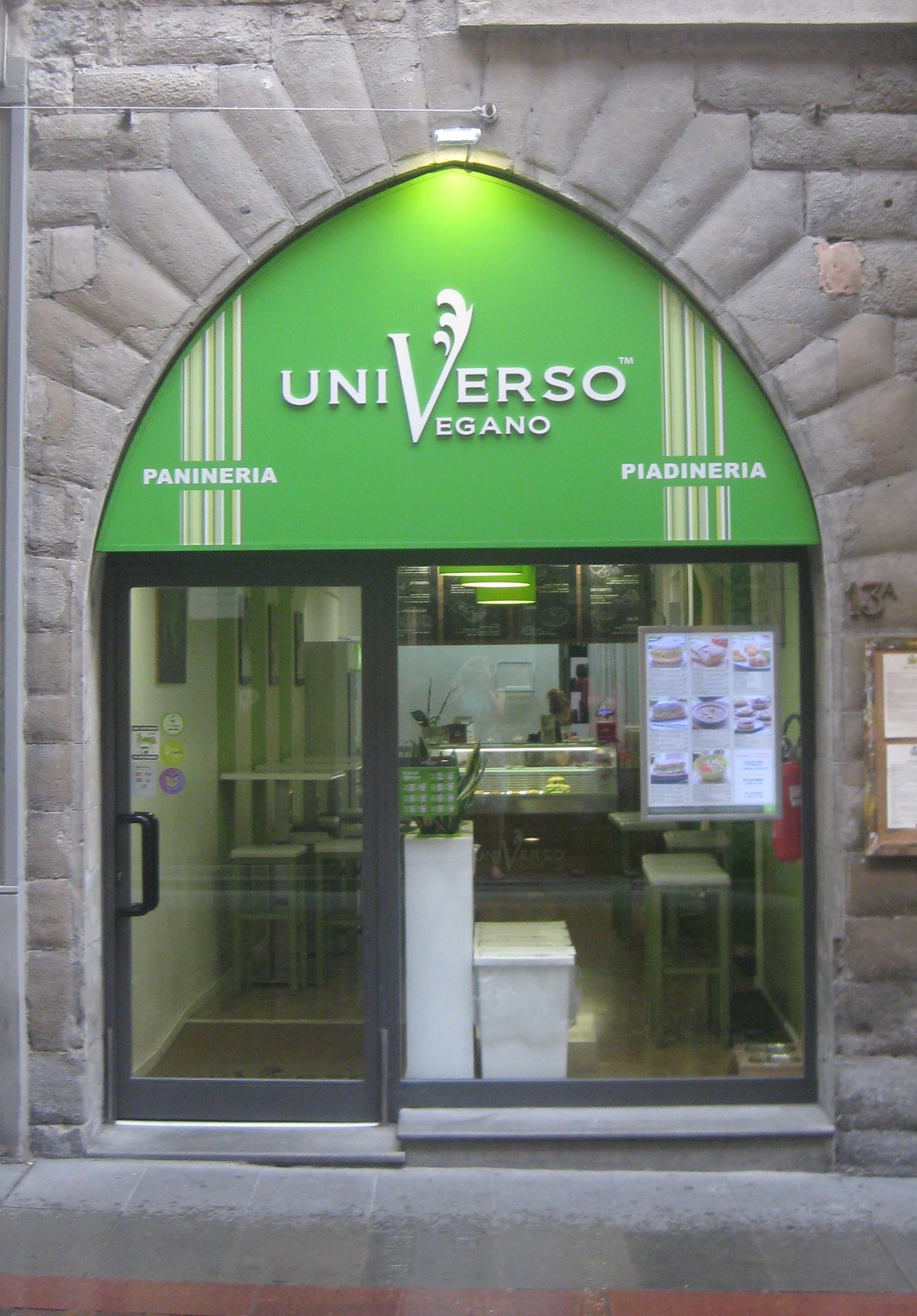 It’s not exactly a vegan haven, but there are some solid options. We were staying just down the road from Universo Vegano, a vegan fast food chain which we spotted in most cities we visited in Italy. It’s a nice, bright place with quick and cheerful service. The menu is quite extensive, though it’s all bread-based: various kinds of wraps, sandwiches, burger, focaccia, etc. And the menu is in both English and Italian, to make things easier for us tourists. The staff also spoke English on our visit, and were very friendly. There were quite a few seats inside (and a dog bowl too, so your canine companions are welcome), but it’s also possible to get takeaway.