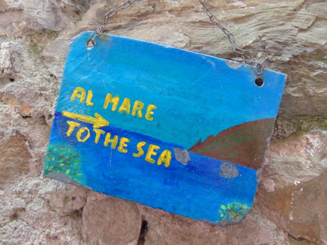 That meant we had to find another option for our daily gelato.  We finally found it in Monterosso, the last of the villages (and truthfully, the worst – the centre isn’t so pretty and it’s mostly a beach resort, but the beaches are all stones rather than sand).  I had given up hope of spotting any vegan-friendly signs, so told Dr HH to just grab a dairy ice cream for himself. As he was ordering at Gelateria La Scogliera, he pointed out a sign on the counter advertising vegan cones.