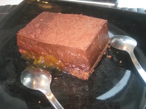 We were still a little hungry, so we decided to split the only vegan dessert: a €6 chocolate cheesecake. It had a thin, spongy base (my kingdom for a biscuity base!) and some kind of marmalade layer, and the chocolate mousse itself was rich and indulgent.