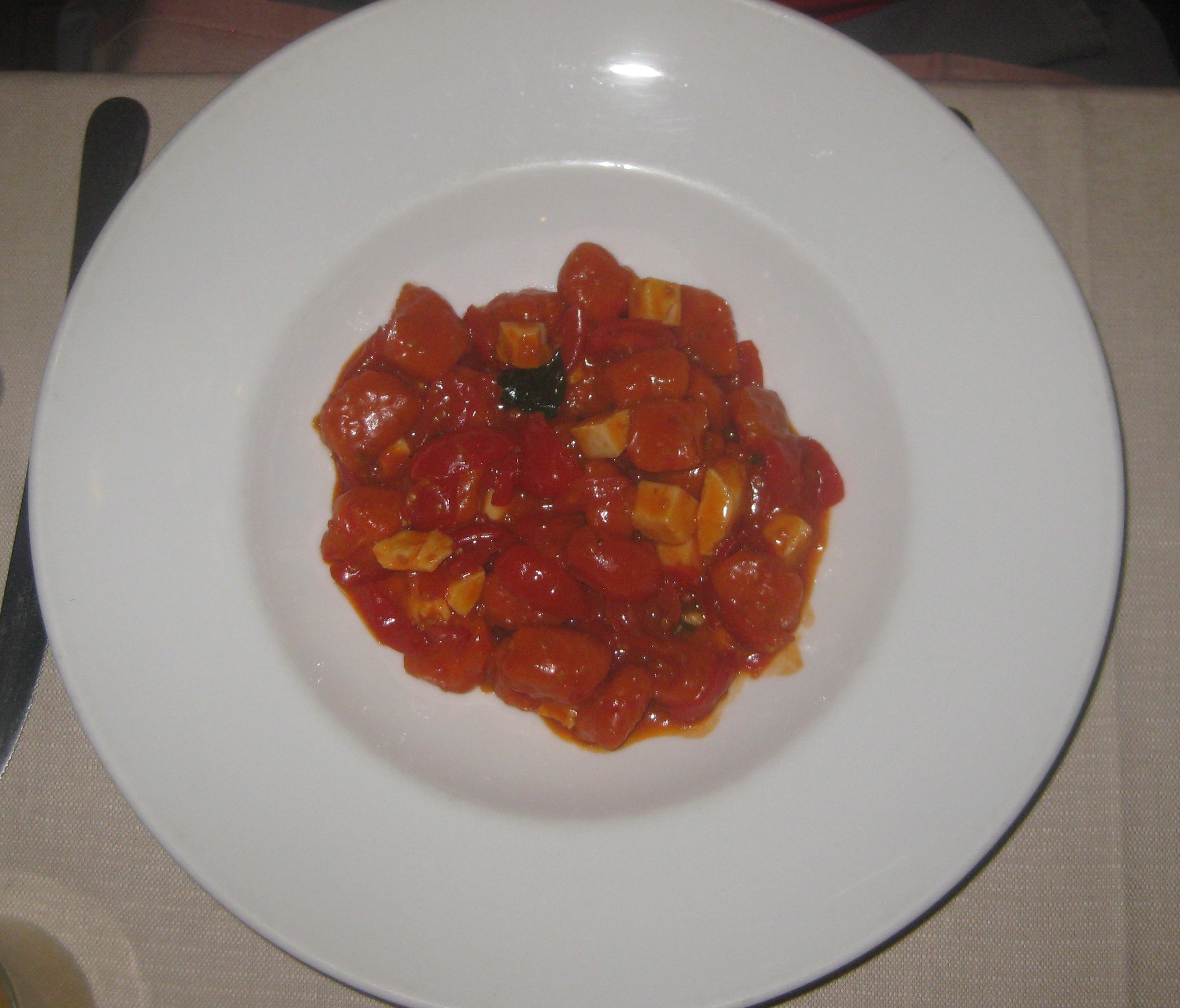 We started off at La Lanterna, despite the fact that it’s a bit fancier than we are. It’s not a snobby or extortionate place at all though, fortunately. We were there ready for opening at 7:30pm and were given a warm welcome.  The menu was only in Italian, and we muddled through with my rusty skills, though I later heard the staff giving better translations than I managed to some other Brits in attendance.