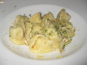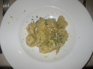 The menu has antipasti, primi, secondi and desserts – we both wanted pasta so we stuck with the primi, but one course definitely wouldn’t be enough.  The pasta dishes were about €9 each, while the secondi dishes were a bit more substantial at around €15.