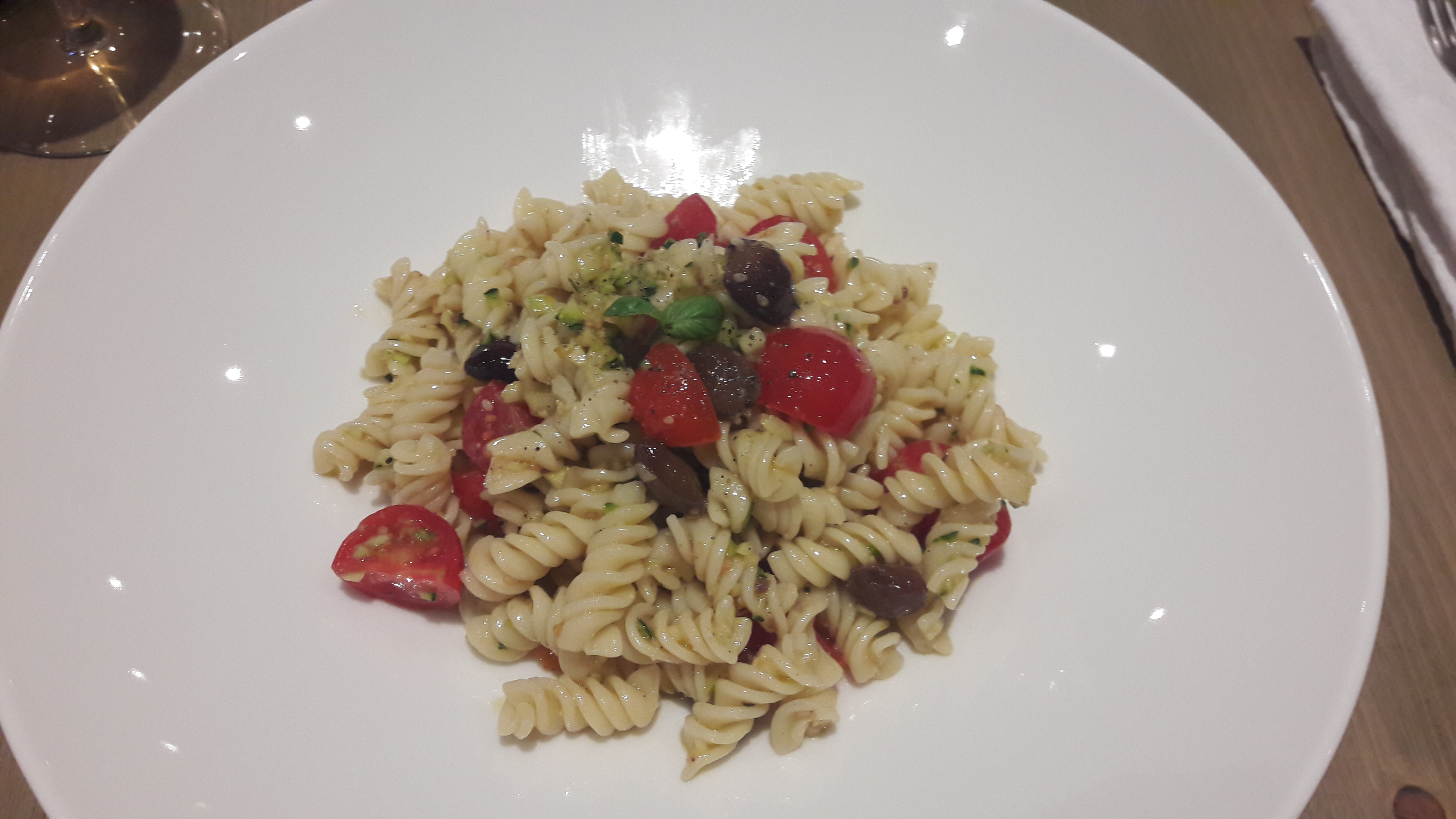 Another failure on the second night: Dr HH ordered the tortellini salad, and got this. Maybe this too would have been completely different if we’d ordered it the night before – as it was, you couldn’t really call it a salad, and we feel like it must have been missing some kind of dressing/fake butter/oil. He said it was fine, but very plain.