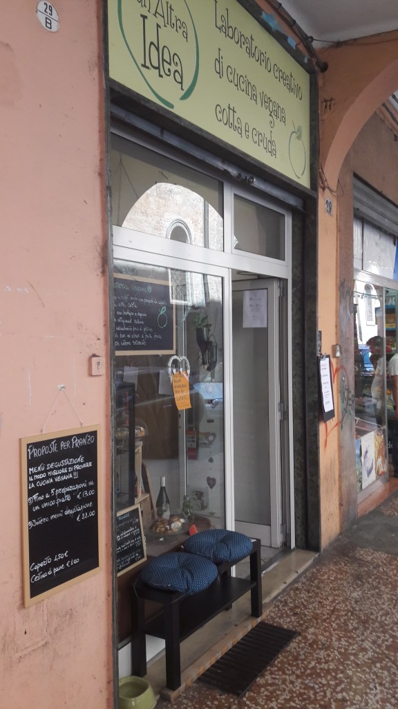Still, we were really impressed by the raviolo and pizza/tart, and really enjoyed this place. Mostly because…THEY HAVE FREE TAP WATER! It’s a beautiful miracle – quite the rarity in Italy, in our experience. The service was super friendly too. We returned in the evening for a hot chocolate and a coffee (they had a decent array of plant-based milks), and got a couple of chocolate muffins for breakfast the next morning (I was too tired for photography though). The muffins were nice, but they were €3.50 each, and they weren’t quite that nice!