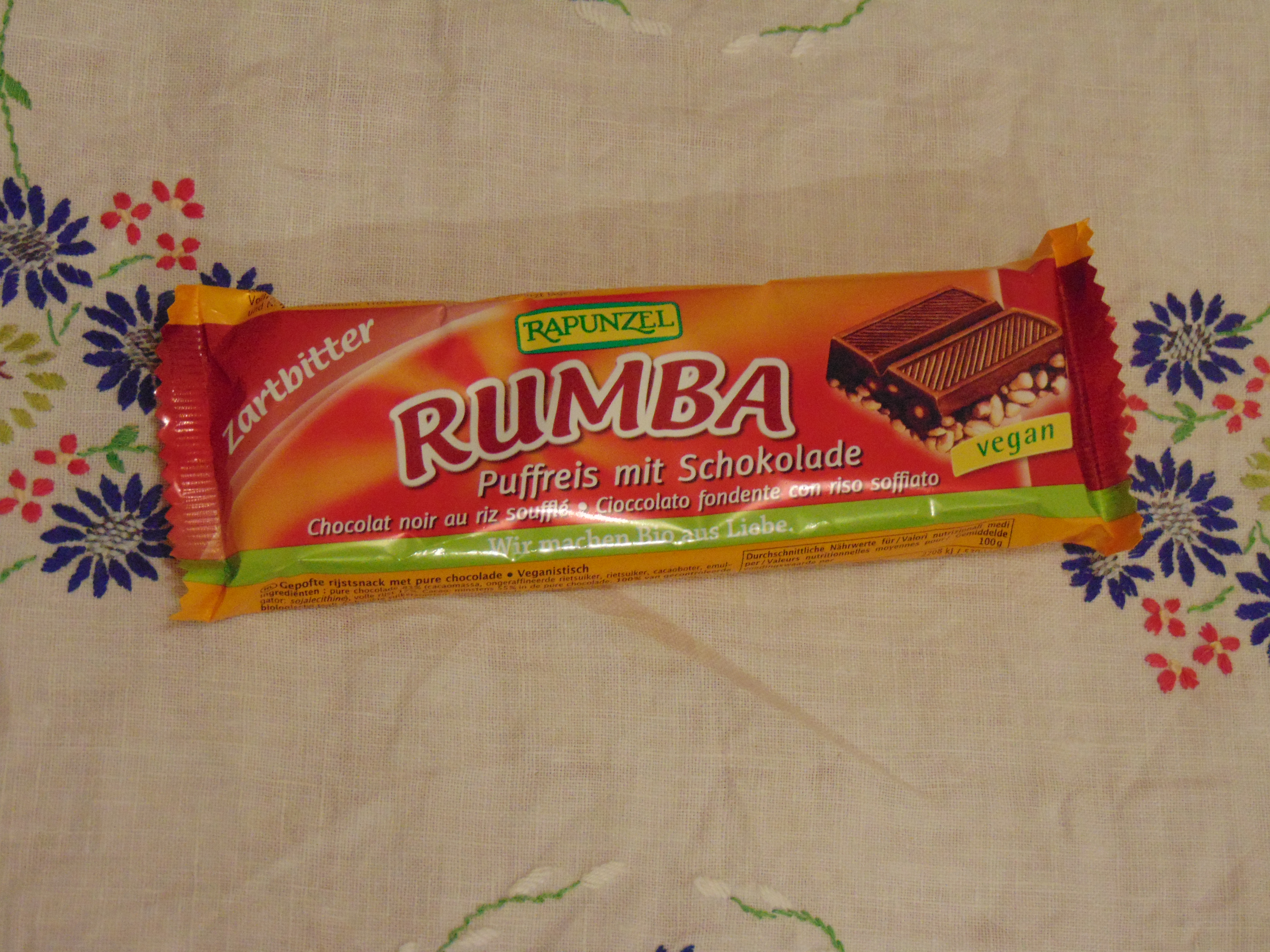 I love Rapunzel chocolate, and I love chocolate with puffed rice, so I just had to try this! It was nice, but of course it would have been better with a milkier chocolate – this one was too dark for my tastes.