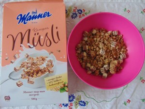 We first saw this Manner Muesli a couple of years ago in Vienna, and always regretted not buying it. Fortunately, we managed to snaffle the last box in Veganz! It costs a fortune, but it’s not like anyone would have this every day. It was more of a granola than a muesli, with lots of little cubes of wafer in there, which was about as delicious as you’d imagine. This isn’t available here in Prague, but we feel like we could easily recreate it with one of our regular granola recipes and a chopped up packet of wafers, with the bonus that it would be much cheaper!