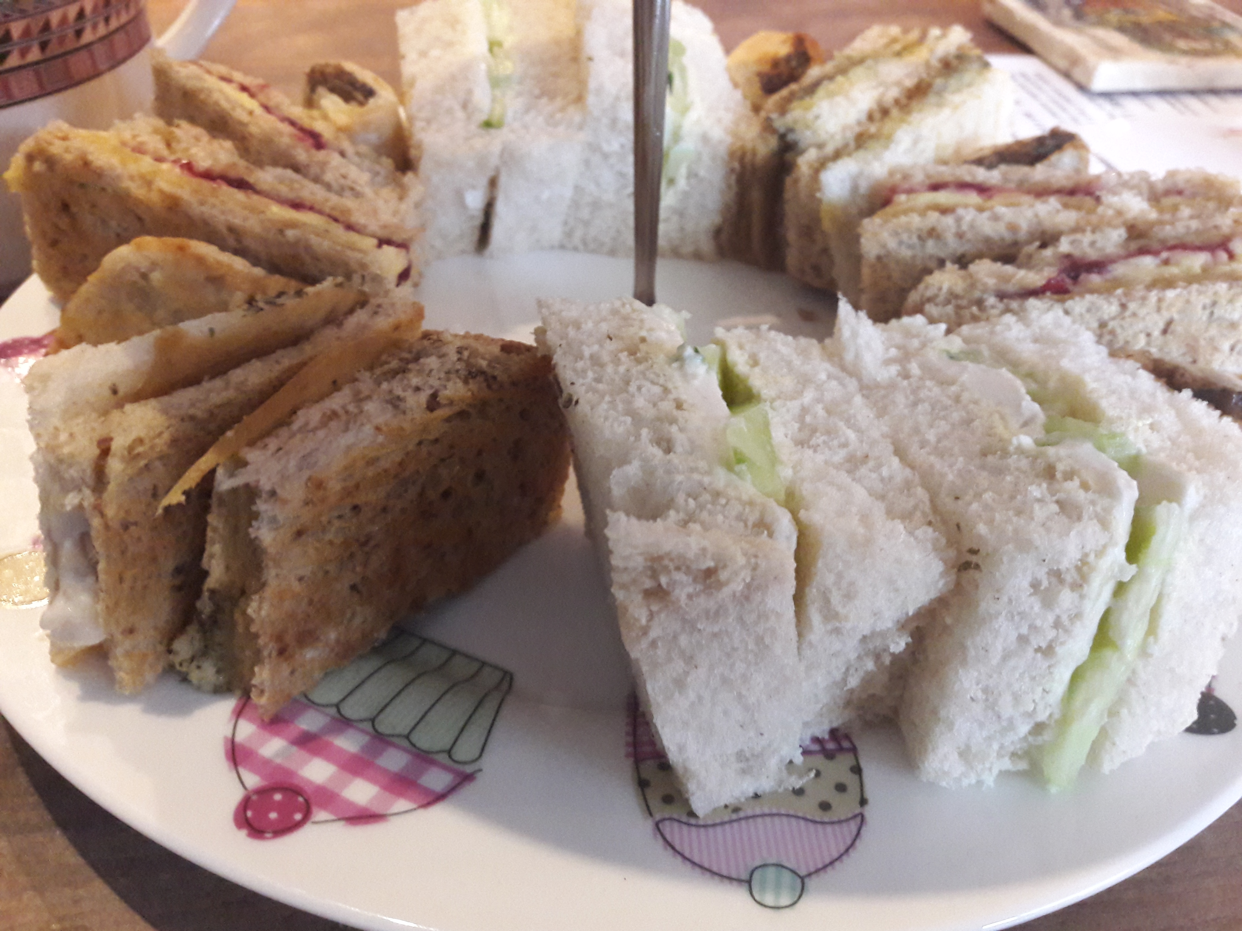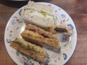 The sandwiches and sausage rolls sound really good, and I definitely like the sound of the lemon drizzle cake!