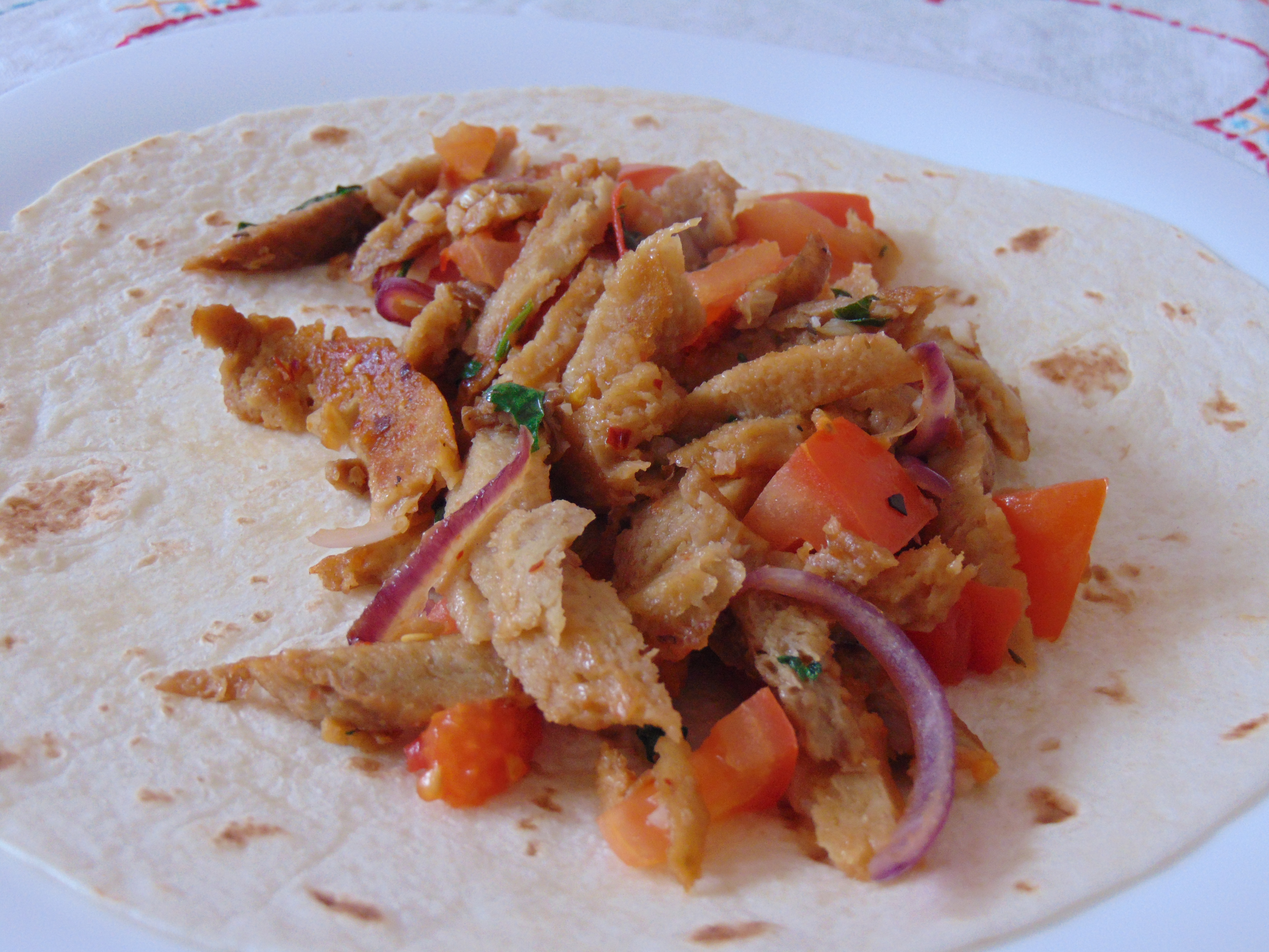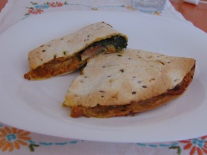 I had high hopes for the seitan de mayo carnitas, but it wasn’t quite as exciting as I’d hoped. It was quite reminiscent of some vegan kebabs I’ve had, but not quite as good as them, so perhaps it was just suffering in comparison. It was nice, but not spectacular – the potato salad and quesadillas above were much better.