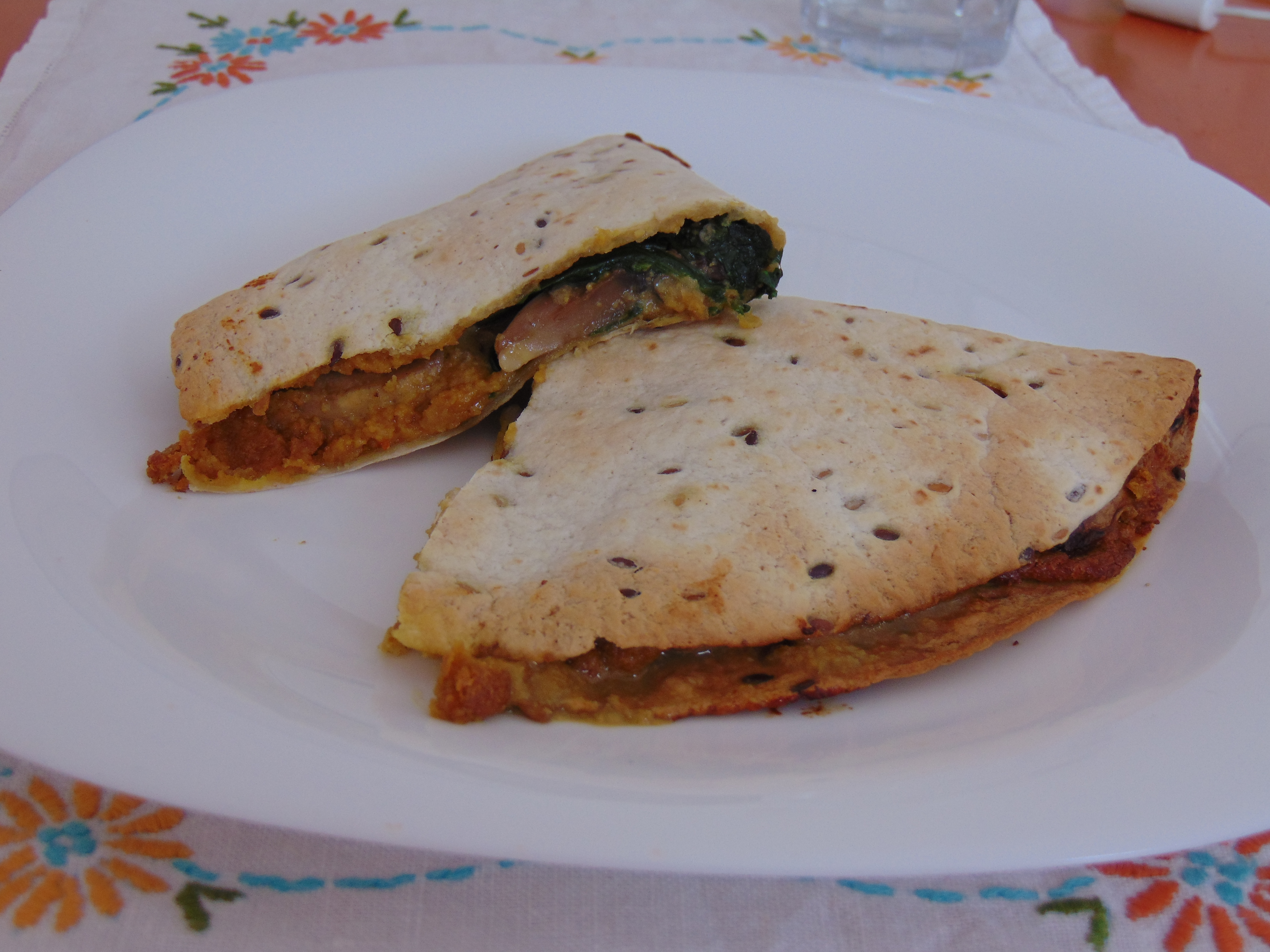 I hadn’t been planning on making the spinach-mushroom quesadillas, but the inviting picture lured me in and I couldn’t resist giving them a try. The cheese sauce I made was a bit too solid, so it wasn’t oozing as temptingly as in Isa’s photo, but it was delicious – there were a lot of good flavours in this dish.