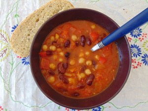 The tomatillo posole with pintos and avocado was also heavily adapted. Tomatillos aren’t really a thing here, nor is hominy, so I used regular tomatoes and chickpeas instead. And the less said about pinto beans, the better. My finished product may not have had much in common with Isa’s vision, but it was a nice spicy, hearty soup I’d have again.