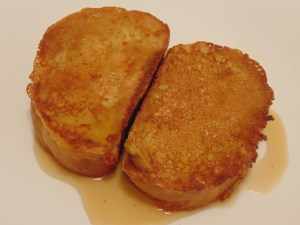Naturally, we also had to make the challah French toast. Again, Dr HH was at the helm for this one, and as you can see by that delicious golden brown colour, he knows how to make French toast! He was a little worried that there was no sweetener in the batter, but I reminded him that the bread was banana-based and we’d pour on some maple syrup, and all was right with the world!