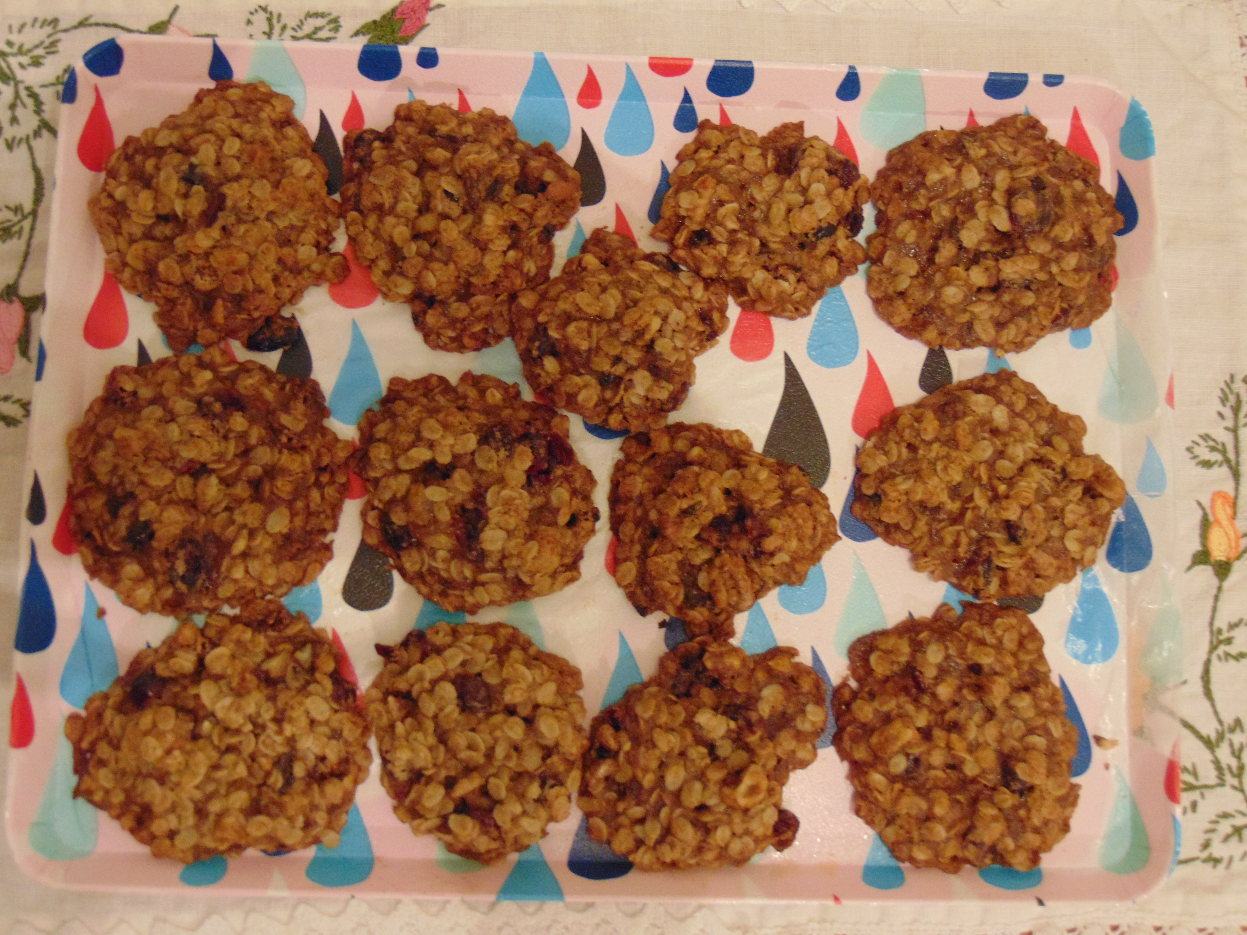 The first time I made these cranberry spice oatmeal cookies they oozed and burned around the edges. The second time they turned out much better, but still didn’t really resemble the picture in the book. I wonder if there’s a mistake in the recipe, or if I just keep doing something wrong? Anyway, the flavours are festive and comforting, and that’s what really matters.