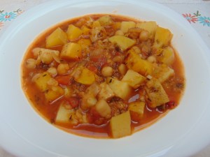 Bouillabaisse is fun to say and fun to eat! It’s meant to be garnished with roasted half moons of yellow squash, but I just threw some roasted butternut squash chunks into the stew, and I was quite happy with that. It’s an easy stew, though personally I’d tone down the grated orange zest – a little goes a very long way! I found this to be pretty standard vegetable stew fare, not really special occasion-worthy.