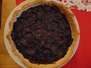 I was quite worried about the chocolate pecan pie, which I made for Christmas Day dessert. When I was making it, the caramel hardened before I could blitz the silken tofu, so I had to call in backup to keep mixing it – I’d recommend getting the blitzed ingredients ready before the chocolate caramel. Then I was worried that the pie filling was going to be rock hard after setting. We got it out of the fridge first thing on Christmas morning, so that by 4pm it was comfortably room temp, and really soft and delicious. It was very decadent, and I heartily recommend trying it. Ignore the gigantic pastry crust,the tin didn’t quite work out – also, I used shop-bought pastry for ease.