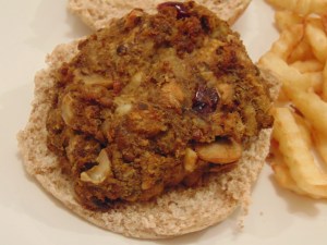 The stuffed Thanksgiving burgers were easy to make, and I froze them before cooking. They cooked perfectly from frozen, and we both loved them. They had a really good, strong flavour from the mushrooms and held together very well. We agreed that we would skip the cranberries next time – I’m not a fan of cranberry sauce, so I found the berries a slightly weird addition.