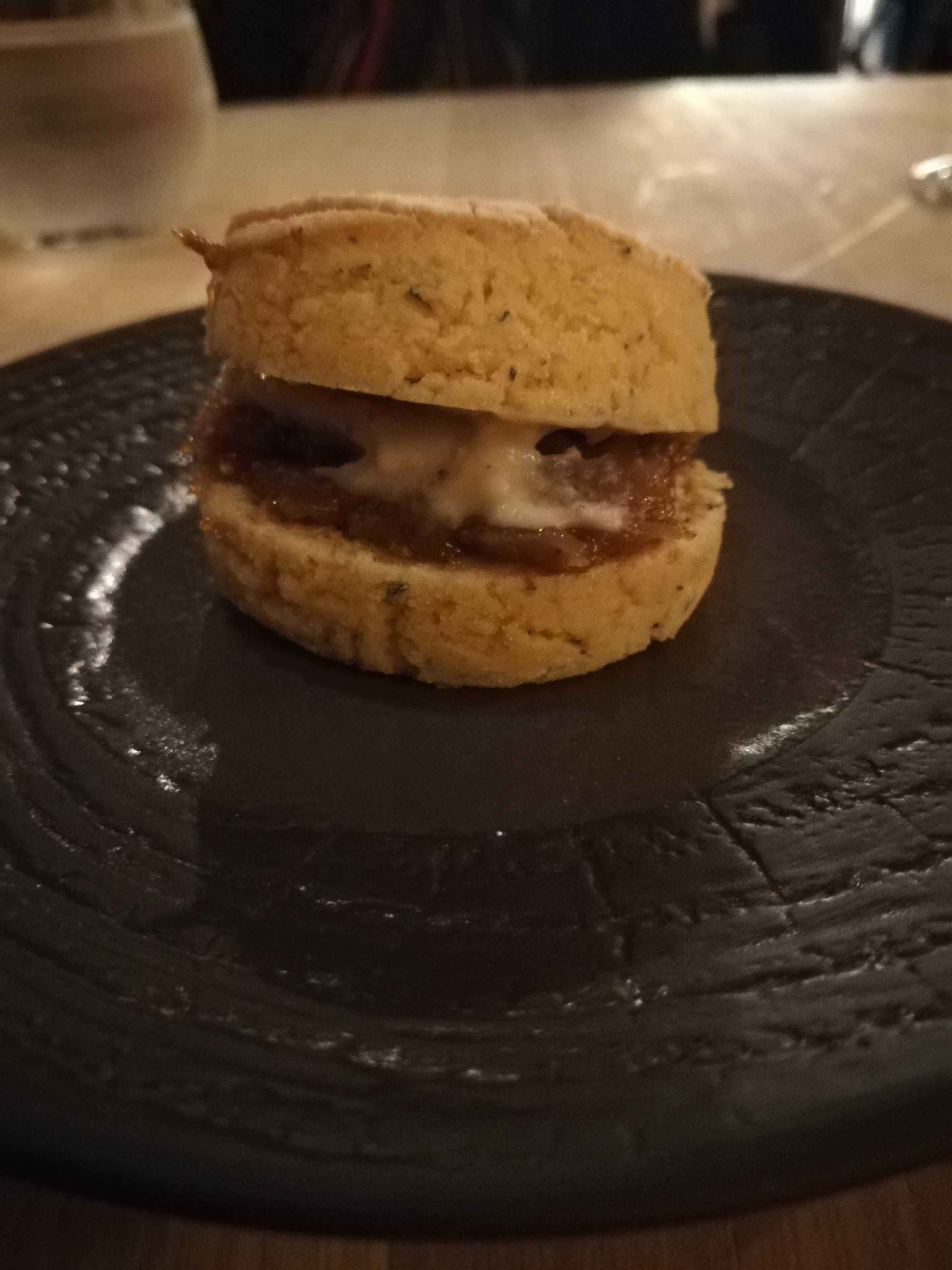 Next up was this rosemary and buckwheat scone with roasted garlic and butterbean cream and fig jam. Truthfully, I thought there was too much jam on this and I couldn’t even taste the garlic, which is a shame as that cream sounds amazing.  It was still lovely, but tipping the scales more towards the garlic would change everything for me!