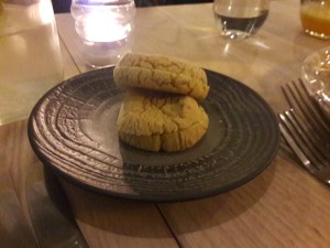 The smoked root starter promised baked celeriac (not again!), smoked onion, pickled cabbage and merlot vinegar. It was a tasty little pate, served with gram flour bread which was almost scone-like.  The smokiness  of this pate was wonderful, and this was a real highlight of the meal.