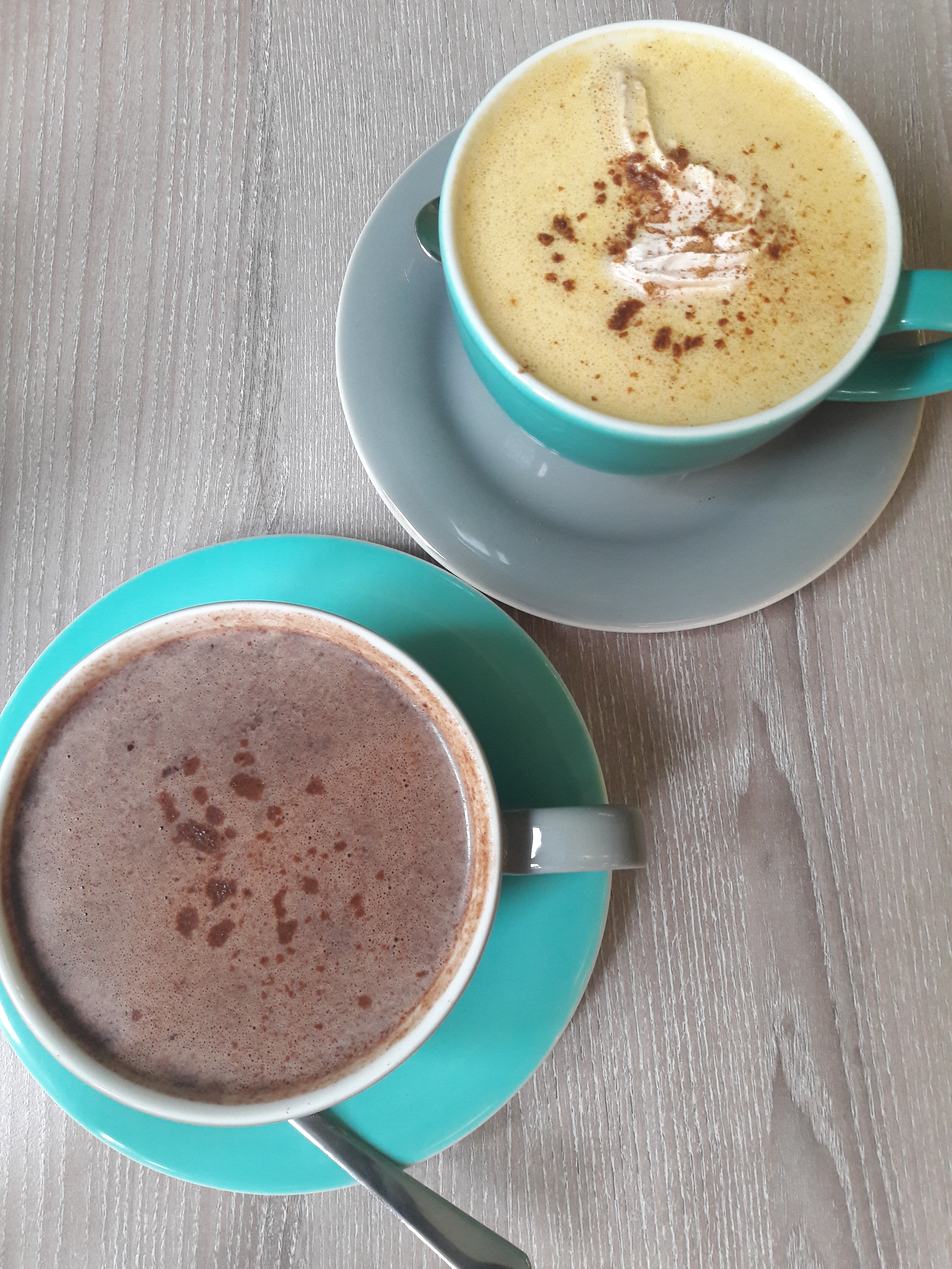 The hot drinks we got with our pancakes were a little disappointing though. Dr HH was quite excited to get on the pumpkin spice bandwagon, but found the latte a bit too sweet. I was dazzled by the pictures of red velvet chocolate on their social media, and disappointed to see a regular hot chocolate instead – it was almost sickly sweet, which was a shame. On the plus side, there’s a carafe of free tap water on every table. Quite the treat in Europe!