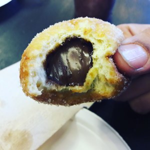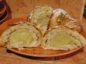 And we got some regular old croissants too. One was filled with lemon cream, and the other was originally empty, but we were given the option of having it filled with chocolate or pistachio cream. We went for the latter.
