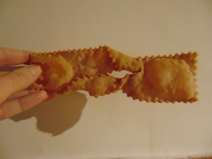 But we could still get a few things for the next day. (The light in our accommodation left a lot to be desired, but you can still get the idea.) It was carnivale weekend when we visited, so they were stocking this frappe, which is some kind of fried dough. It was sweet and crispy, and I approved!