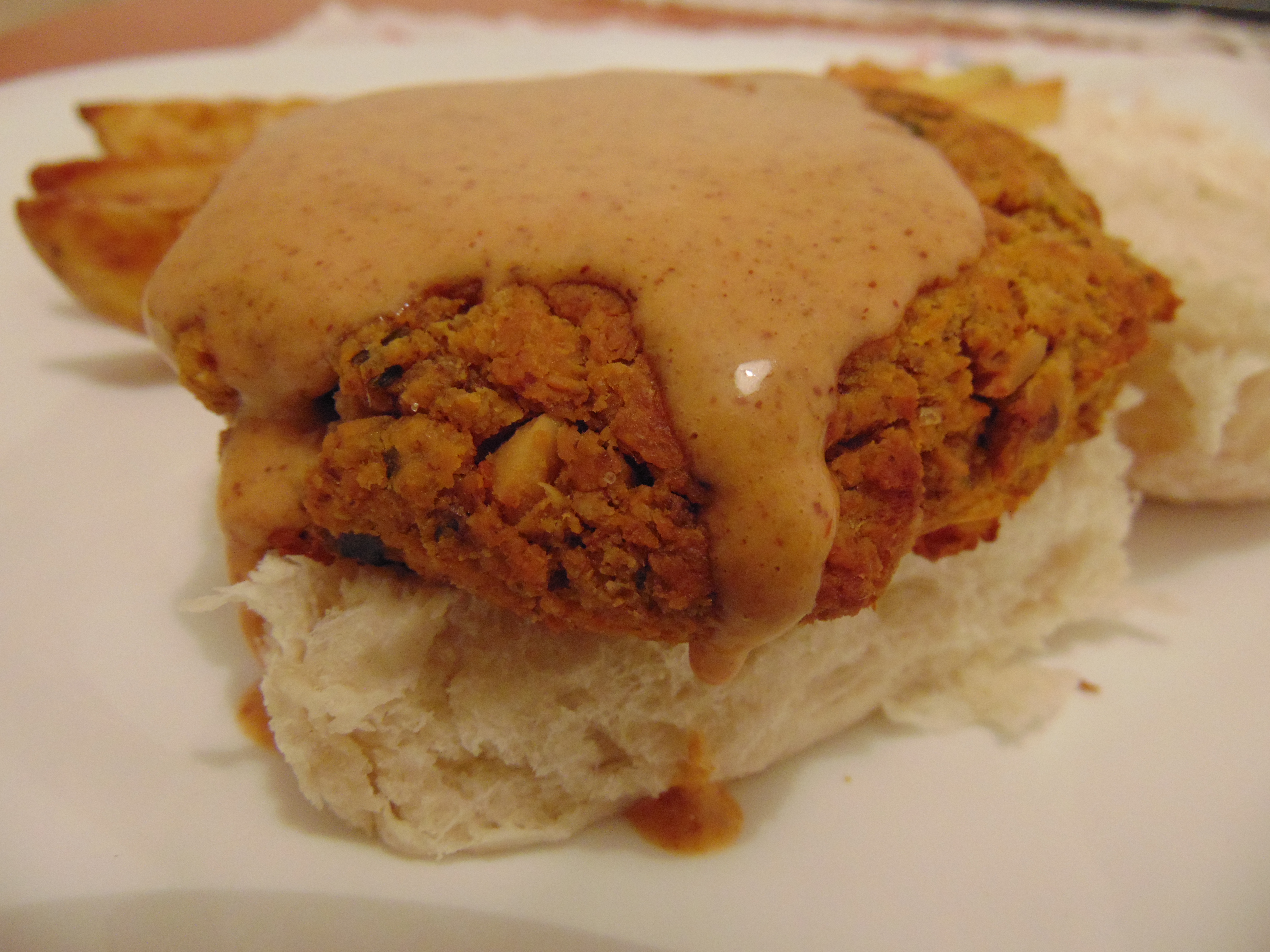 These sweet potato, peanut and chickpea burgers had been sitting in the freezer taunting me throughout our whole oven-less spell, but they were worth the wait. The patties held together really well, and they were really flavoursome. Initially I thought they were a little too sweet and nutty when paired with the almond-sriracha sauce – but then I got that fiery kick! I would have liked a few more recipes that used this sauce – I just used it as a sauce on some rice, smoked tofu and roasted peanuts, which I would definitely recommend.