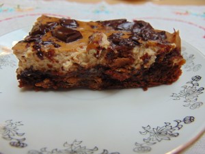 Those almond butter cheesecake brownies are so good!. The cheesecake holds the moisture even with baking time/oven differences.