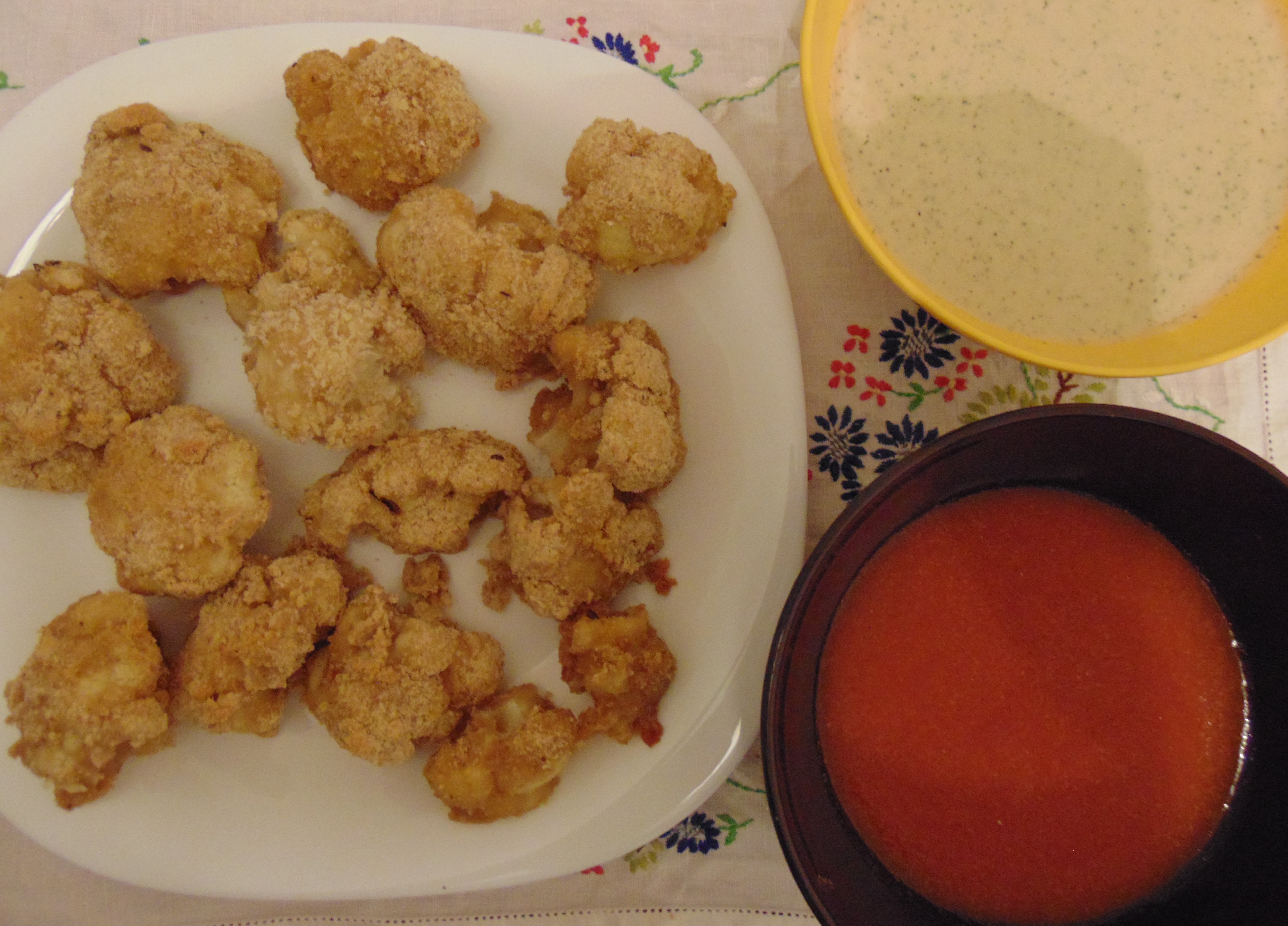 The firecracker cauliflower bites sounded a bit scary to someone with a pretty low tolerance for spicy food, but I went bold, and I’m glad I did! This recipe brought together a few different components: crunchy baked cauliflower, firecracker sauce and ranch dressing. We simply dipped the cauliflower in the firecracker sauce rather than coating the pieces, and this definitely helped to retain the crunch. I loved all components of this dish -the cauliflower was really well coated thanks to the batter layer, and cooked perfectly, the firecracker sauce was spicy but was complemented by the cooling and well-seasoned ranch. We make some variation on buffalo cauliflower pretty regularly, and I think this is now my preferred recipe (though there’s lot to be said for the blue cheese dip from But My Family Would Never Eat Vegan!).