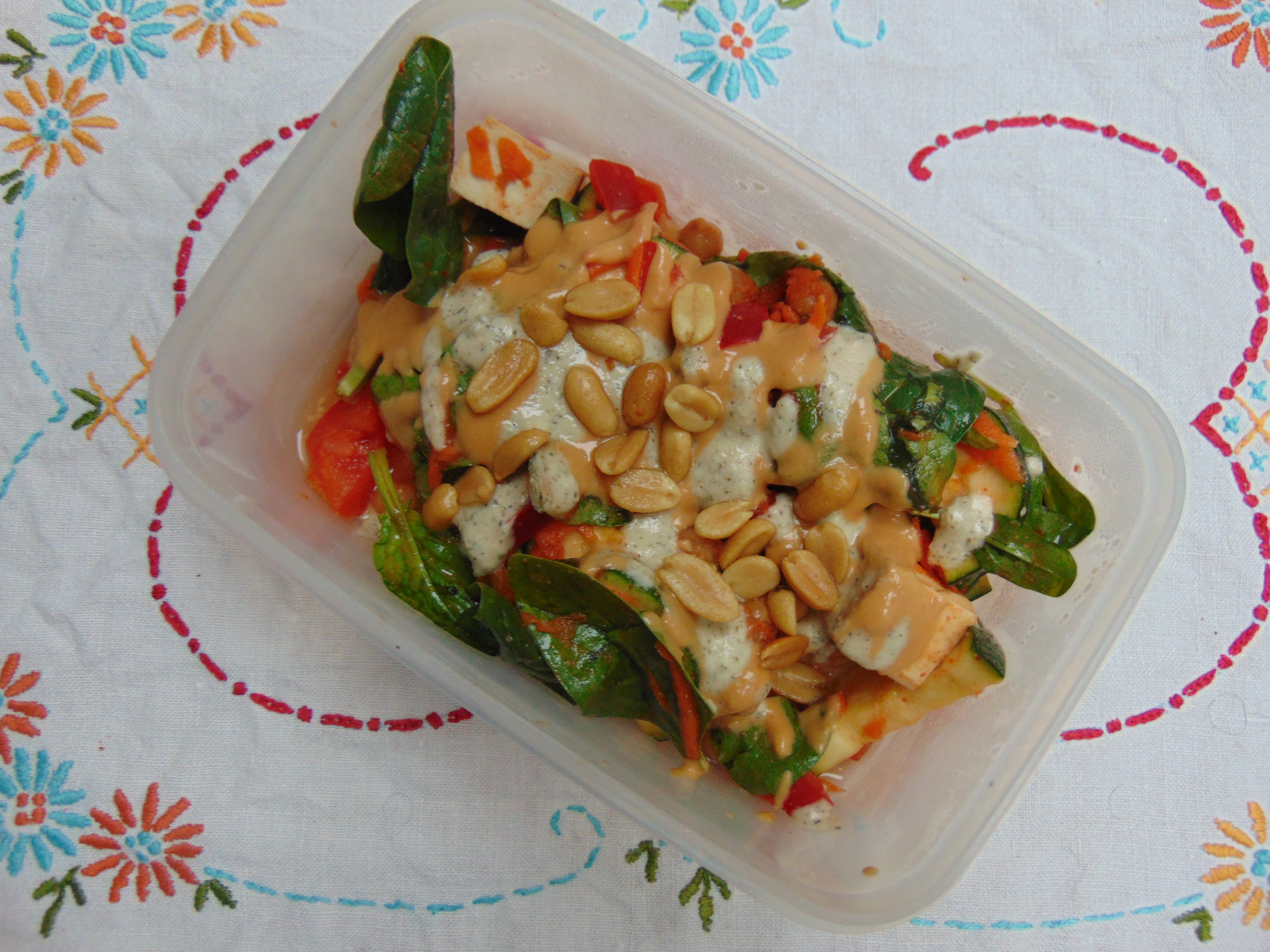 Both the firecracker sauce and the ranch dressing popped up again in this firecracker chickpea salad with peanut dressing. It was a really tantalising balance of flavours, and I just loved that peanut dressing. I added smoked tofu along with the fiery chickpeas so it would keep us going all day. With the firecracker sauce, ranch and peanut sauce it turned out to be quite a sloppy salad, but it was definitely a winner.