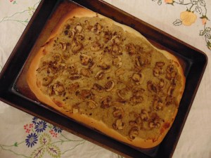 For our anniversary back in January, Dr HH and I had planned to have a pizza night. We don’t often collaborate in the kitchen, but pizza would be the perfect opportunity to do so, with Dr HH working his magic on the dough and mozzarella while I took care of the toppings. Alas, our oven was broken at the time, but in March we finally got to make the two pizzas we’d been thinking of. We made the mushroom-jalapeno white pizza with chilli flakes rather than jalapenos, but otherwise followed the recipe. The easy pizza dough was relatively easy, but needed a lot more flour than recommended to get it to come together. I’d already made the white garlic sauce for the lasagna in January, but it was nice to really get to enjoy the flavour in isolation this time -it was delicious. I must have thickened it up too much though, as there’s no way this would have been enough for a second pizza, as the recipe intended. It was a really garlicky, delicious pizza.