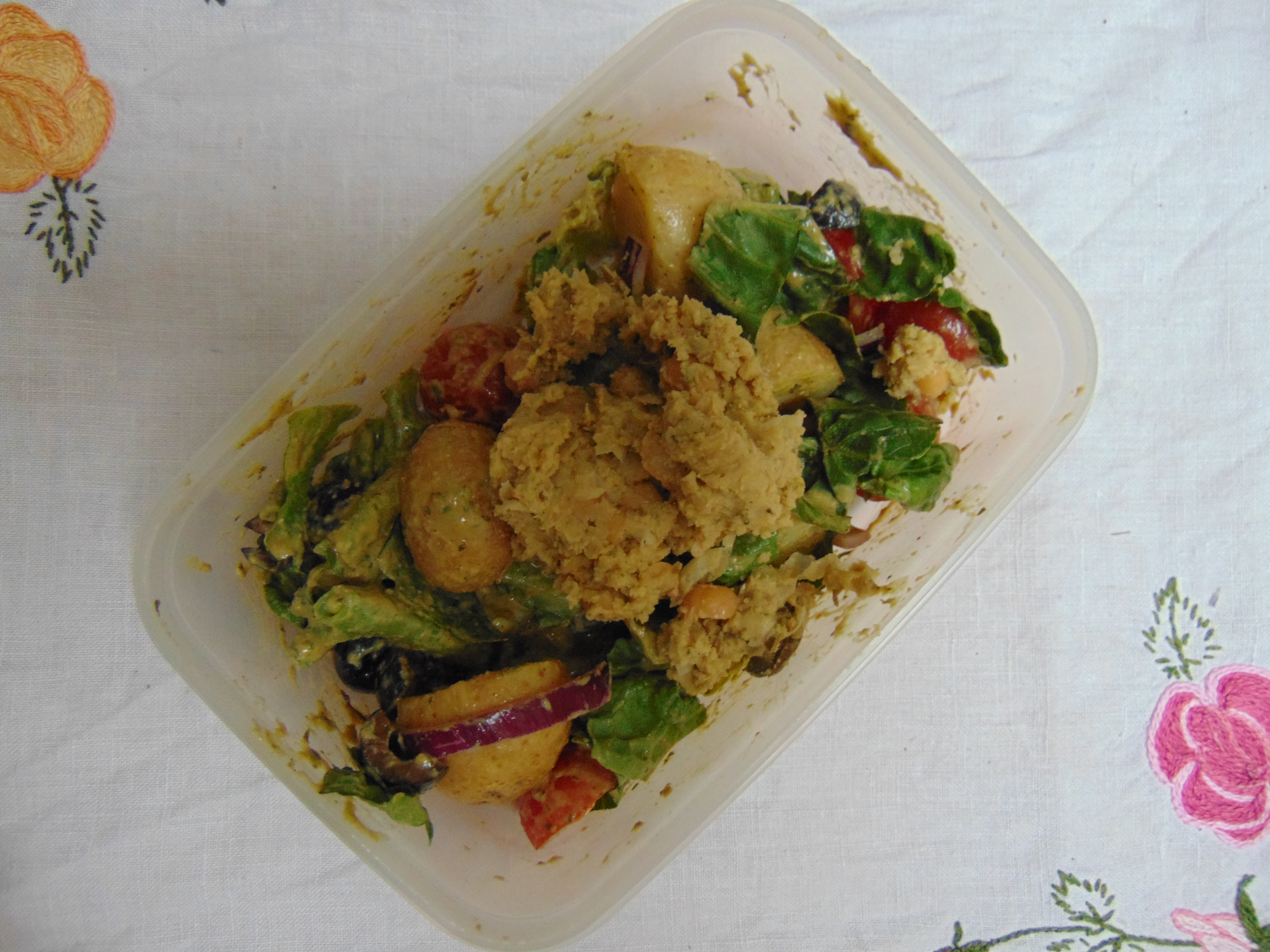 And the goddess nicoise was even better. It was my first ever nicoise salad, so I’m not entirely sure what I was aiming for. Despite the instructions to keep all the components separate and the green goddess garlic dressing on the side, I just mixed everything up – it was in our lunch boxes, so it was getting mixed up either way. It was so delicious, though the dressing was very potent and may not have made me too popular in the office. The chickpea/tuna concoction was especially flavoursome.