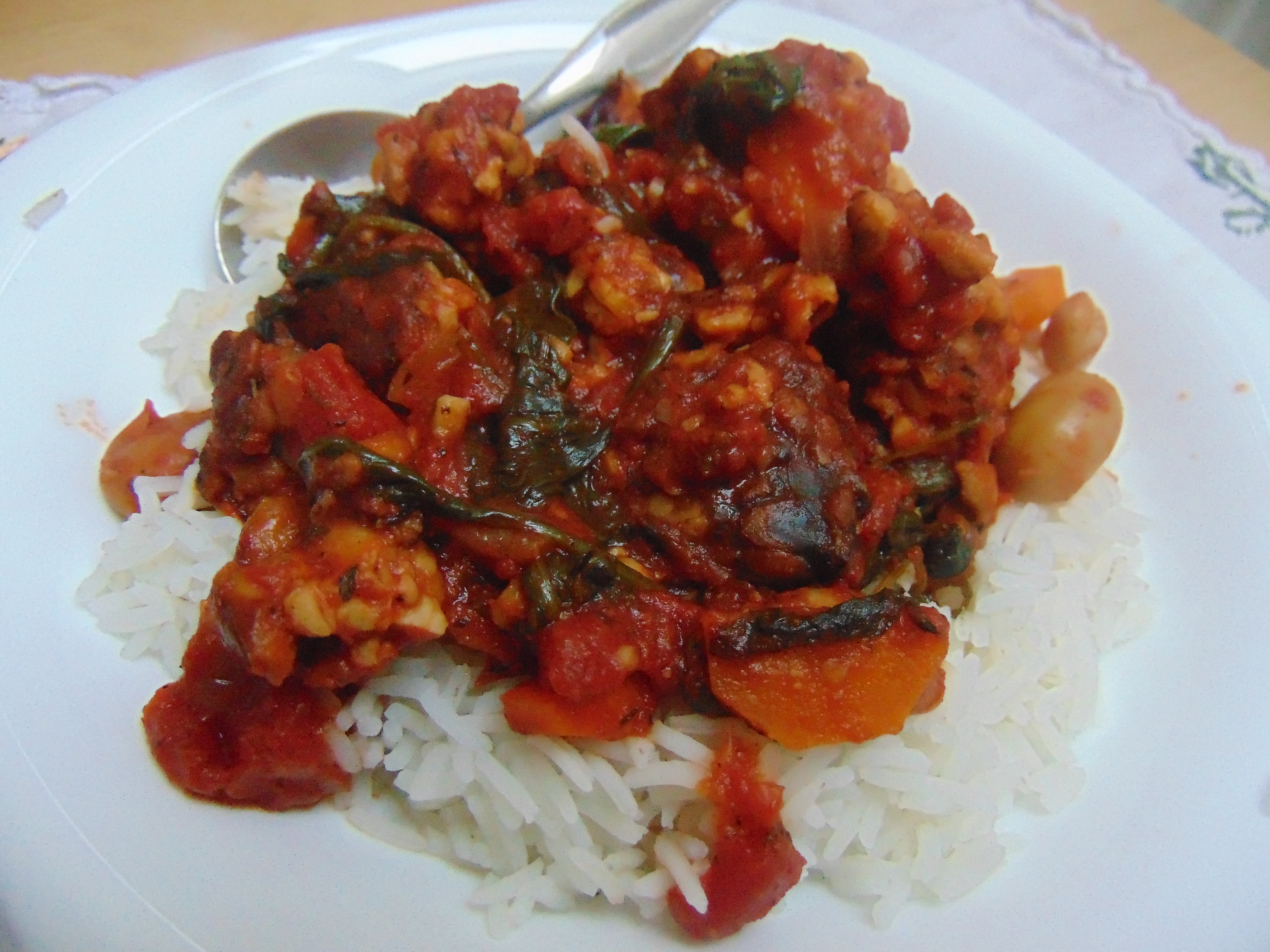 He got into the kitchen himself to make this lentil and eggplant chilli mole, which I found very well seasoned, but he found a little mild. He was a bit sceptical about essentially boiling the aubergine rather than frying it first, but was won over by the texture in the end.