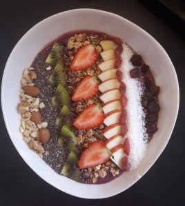 I don’t think I ever feel fancier than when I’m eating an acai bowl for breakfast. I do it rarely (because truthfully, I’m much happier eating a gigantic baked good for breakfast), but this weekend was one of those occasions. It sounds terribly sophisticated (to my unsophisticated ears) to say that I went for a weekend away and had an acai bowl for breakfast.