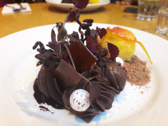 We planned an overnight stay in Bath just so I could try this dessert, and it was definitely worth it! It was a rich tart with a crumbly base and, yes, a dollop of peanut butter sorbet. And when I say dollop, I of course mean “quenelle” – that’s how fancy this was.