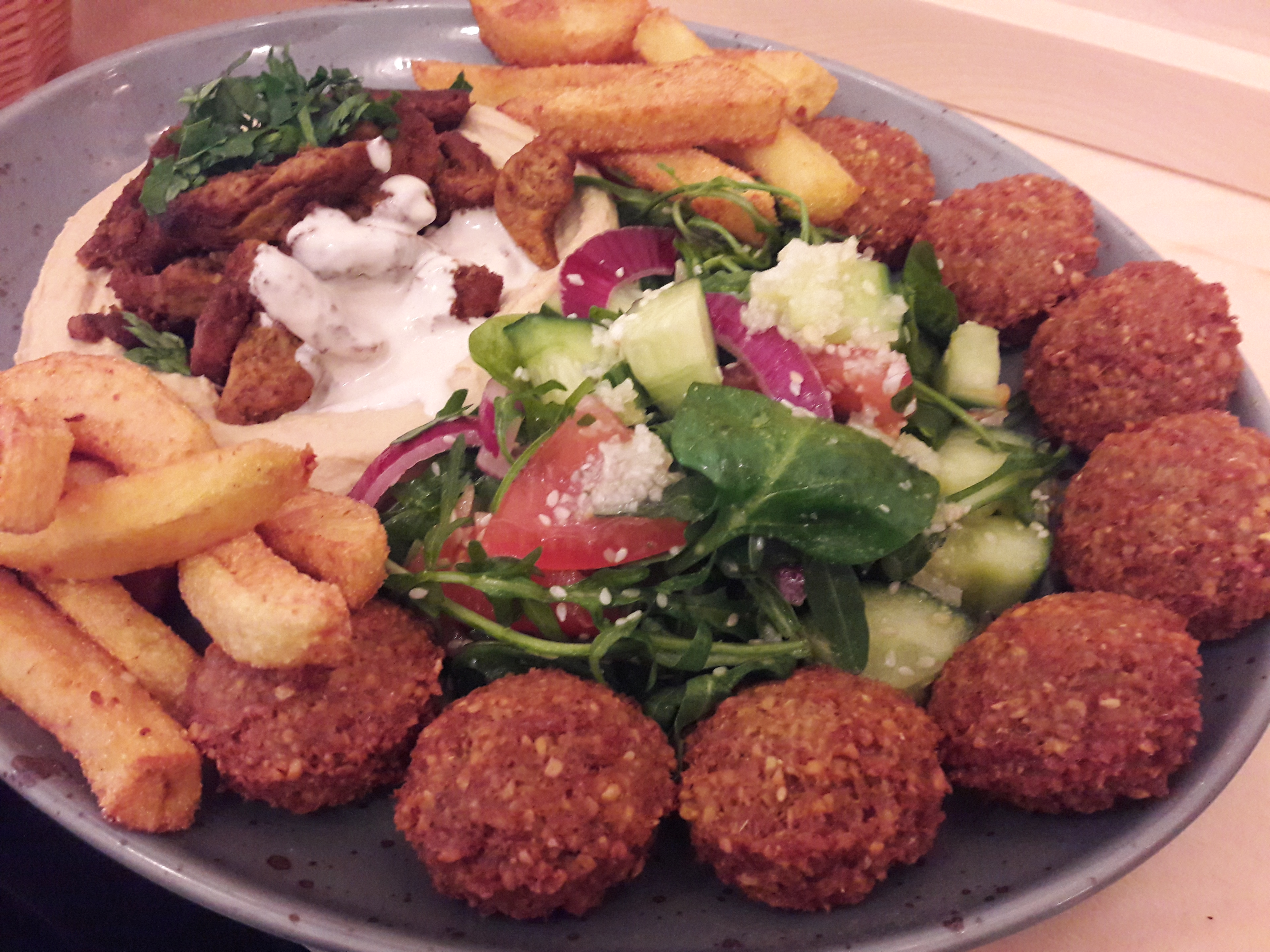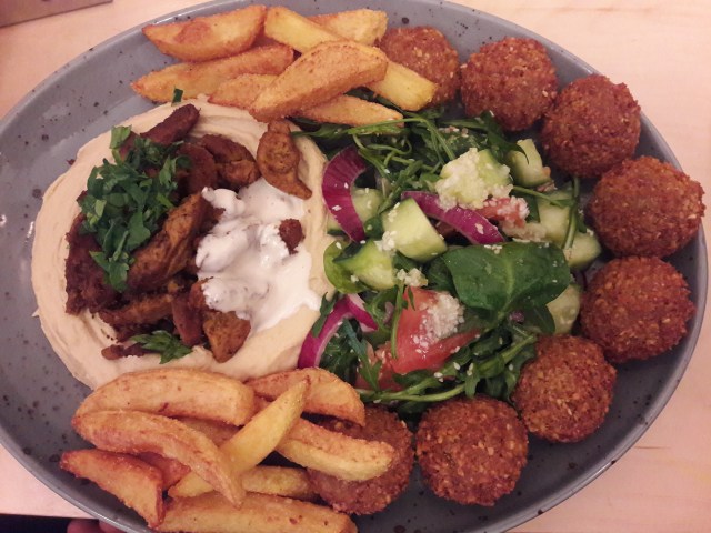 For vegans, it’s very easy to get sick of falafel, hummus, and chips. They seem to be the default options on many an uninspired menu, and every takeaway cafe in the UK seems to have a standard dry, chewy falafel wrap or sandwich on the menu. But still – is it possible to get sick of proper falafel? I mean fresh falafel cooked by someone who knows what they’re doing.