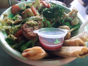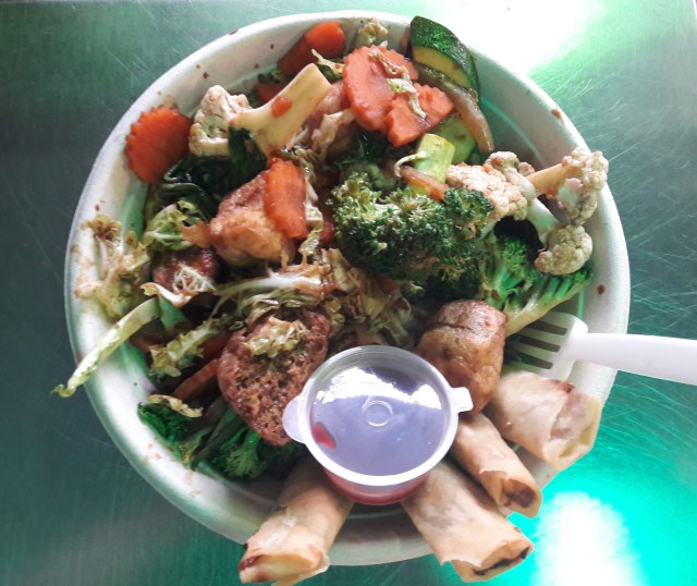 This was another cuisine that I was not expecting to be able to tick off – I went to the Philippines when I was vegetarian and didn’t find any traditional dishes to try. But Cook Daily in London serves a vegan adobo dish which you can order with either mock chicken or tofu puffs. Full disclosure: Dr HH ordered this, then had to switch with me because I accidentally ordered a spicy dish and could not handle it. Anyway, he chose the tofu puffs, and added the spring rolls and special sauce as well.